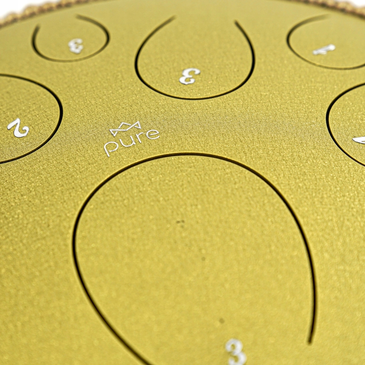 Pure Tongue Drum із серії PRO — це високоякісний інструмент із ефірним звучанням, який захоплює та захоплює у чарівний світ релаксу. Його діаметр становить цілих 14" / 35,5 см. Виготовлений за допомогою найсучасніших методів лазерного різання з неймовірною точністю. Саме завдяки цій точності цей інструмент звучить набагато краще, ніж інші схожі на вигляд інструменти.