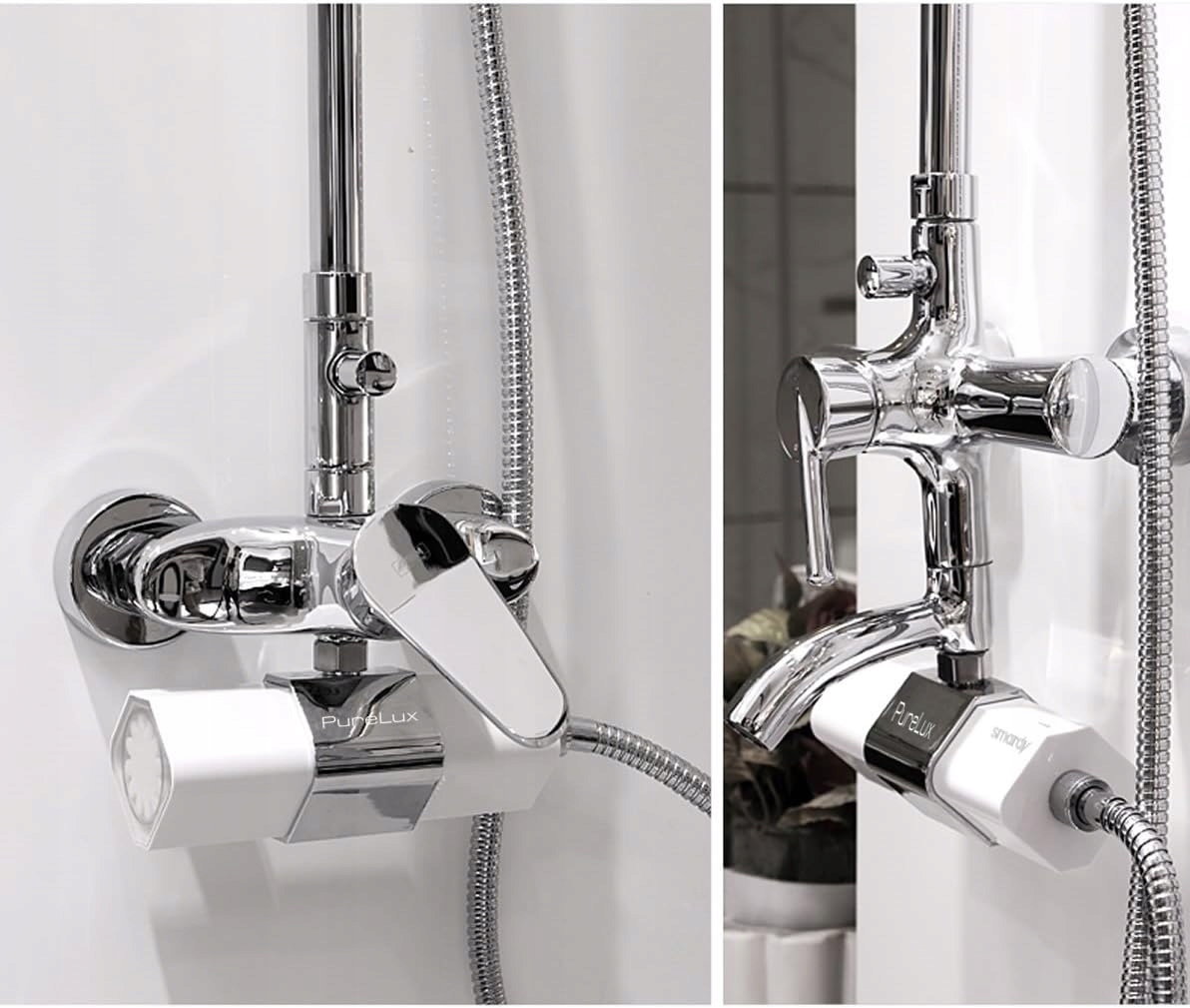 - Інтелектуальний водний фільтр для душу Purelux для чистої води з душової головки та природного догляду за тілом для сухої шкіри та затягнутого волосся