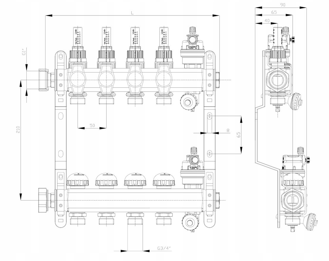 Колекціонери колектора виготовлені з нержавіючої сталі високої класу 1.4301 з чверті профілю з перехресним розрізом 40 × 40 мм. Compared to the equivalent of 1 "wheeled cross -section, this profile is characterized by higher capacity and less flow resistance. Each splitter is individually marked with laser engraving, where in addition to the serial number and the Purmo logo there is also the QR code