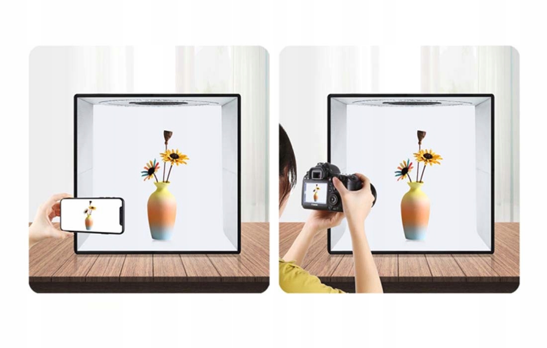 подбайте про оптимальне відображення сфотографованих предметів. Щоб вам було легше підкреслити те, що є найкрасивішим у вибраних об'єктах, у наборі включено замінний фон у 12 кольорах. Доступні варіанти - чорно -білі, сірі та золоті, жовті та помаранчеві, червоні та рожеві, сині та фіолетові, а також зелений та коричневий. Виберіть правильний колір та зробіть сфотографовані предмети ще кращими!
