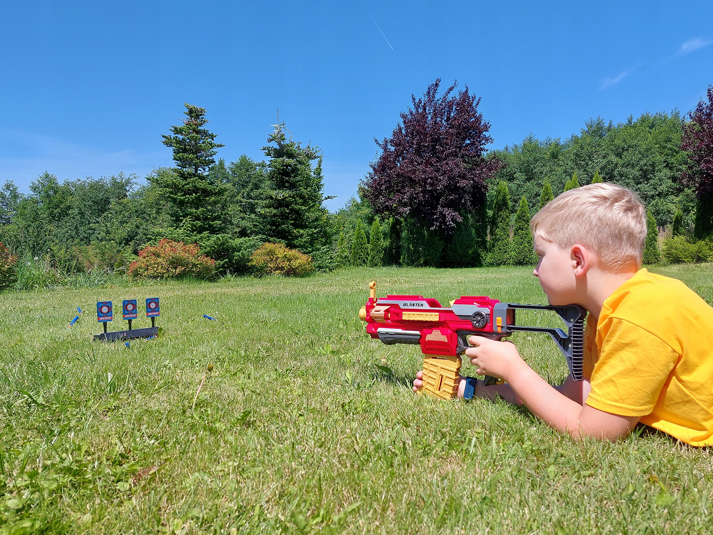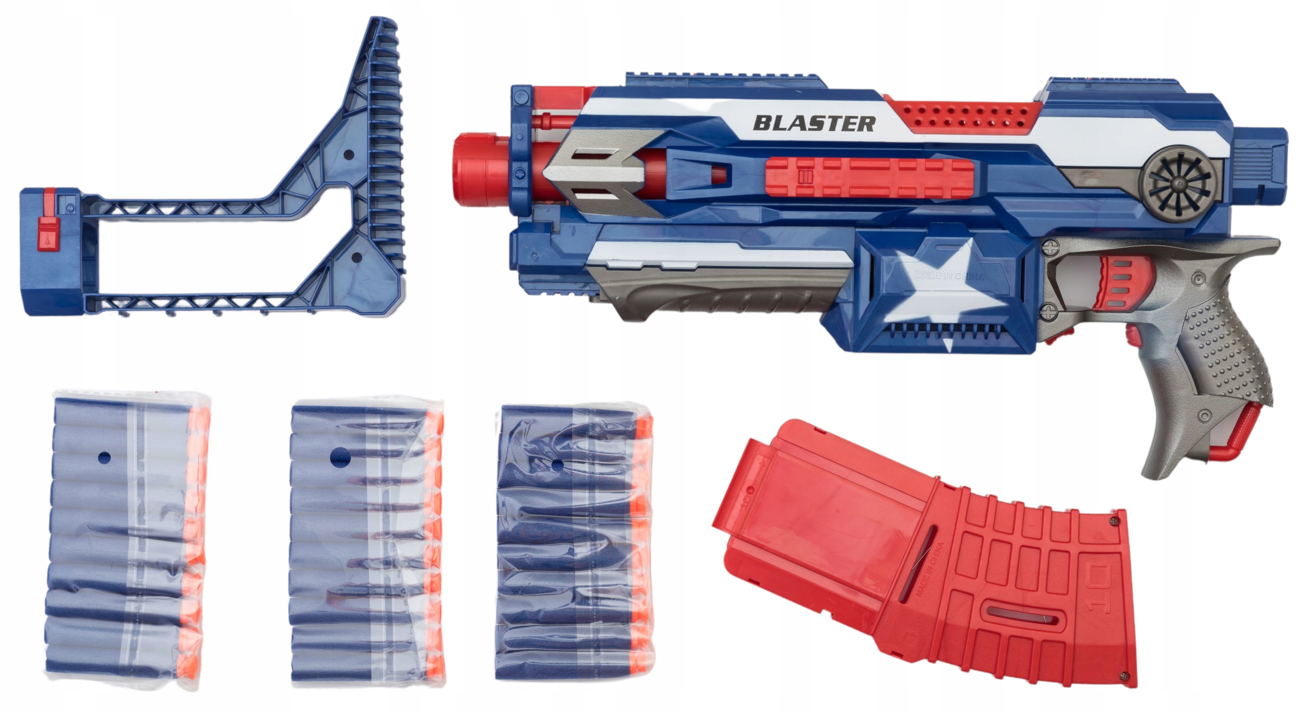 Гвинтівка надійно зроблена завдяки міцній використаний матеріал, але в той же час він легкий і безпечний для дитини, що грає - немає гострих, виступаючих елементів, а снаряди виготовлені з ніжного спіненого матеріалу.