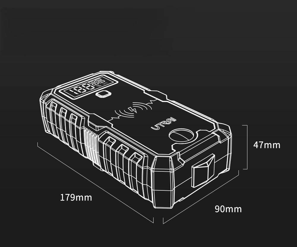 Автомобільний зарядний пристрій UTRAI також є портативним акумулятором, цей автомобільний стартовий пристрій може досягти швидкої бездротової зарядки 10 Вт, додано подвійні виходи USB (USB1: 5 В/3 A, 9 В/2 A, 12 В/1,5 A та USB2: 5 В/2,1 A). Швидкість заряджання на 80% вища, ніж у звичайного мобільного джерела живлення.