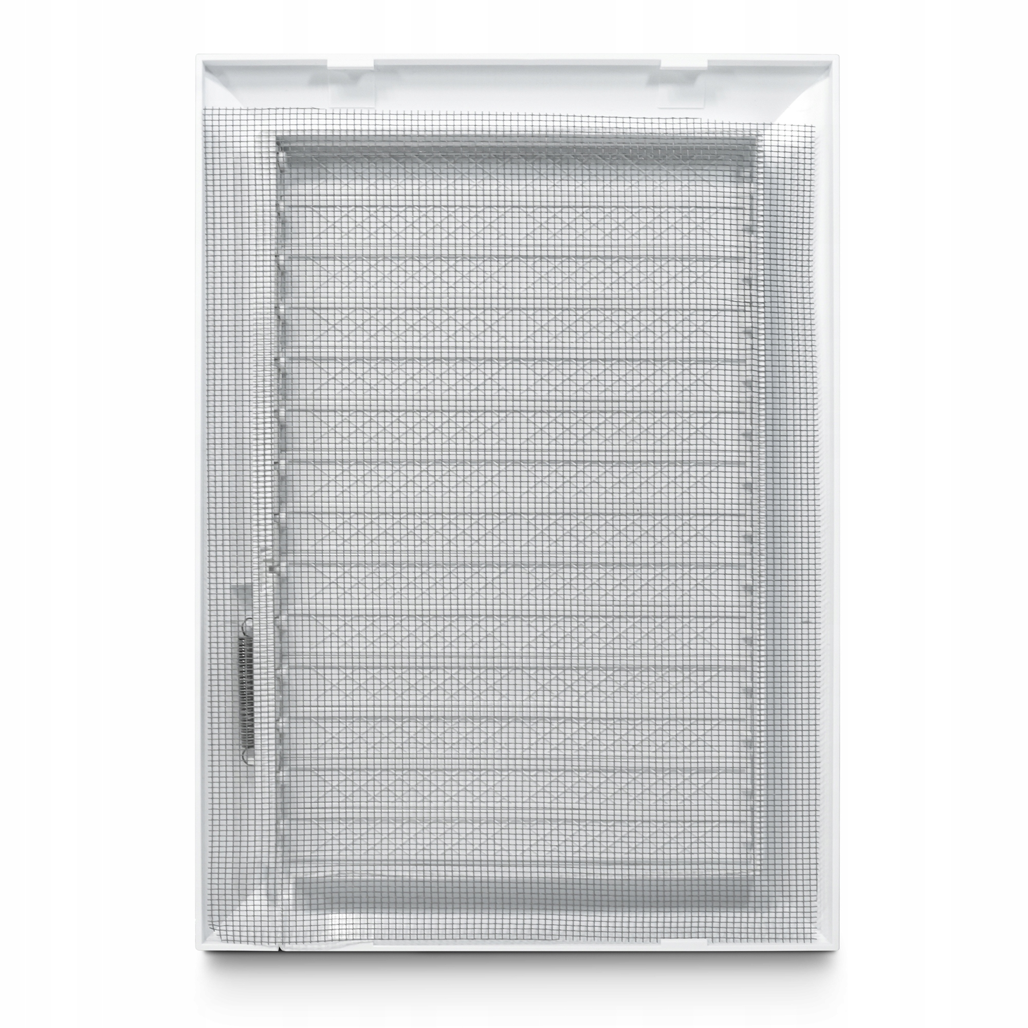 Вентиляційна решітка 14х21 з сіткою, зовнішніми жалюзі та рамою в стіні, що дозволяє точно та легко встановити.
