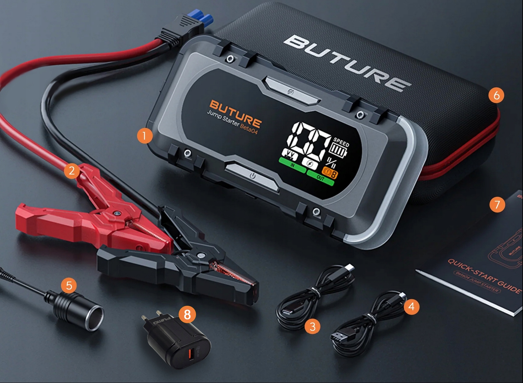 - Швидке заряджання PD65W: пристрій оснащено портом швидкого заряджання, тому ви можете завести свій автомобіль лише через 5 хвилин зарядка.