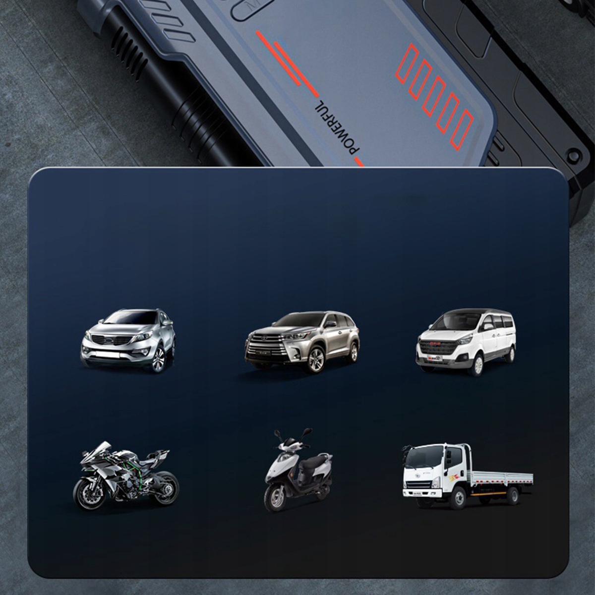 ✅ Завдяки високій силі струму 1000 А пристрій дозволяє запускати транспортні засоби з акумуляторами великої ємності. Підходить для транспортних засобів з установкою 12 В.