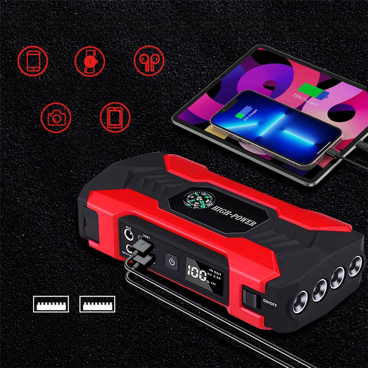 ПУСКОВИЙ ПРИСТРІЙ ДЛЯ АВТОМОБІЛЬНОГО JUMP STARTER POWERBANK 28000 mAh