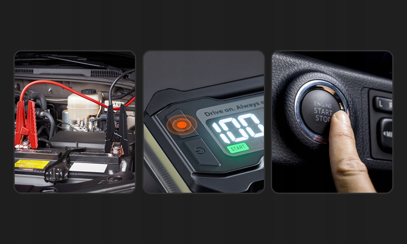 ☑ Надпотужний стрибковий стартер - піковий струм 4000 А та акумулятор ємністю 24 000 мАг надійно запускають автомобілі, мотоцикли, позашляховики та вантажівки, навіть з 10-літровим бензином або дизелем двигуни.