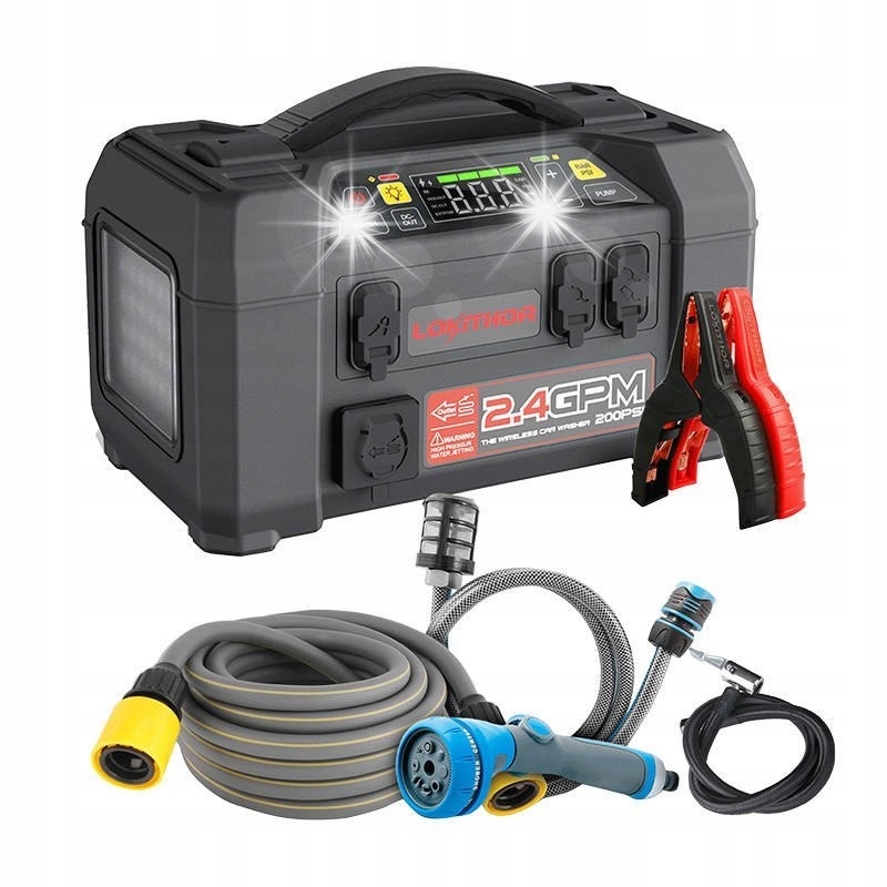 Lokithor AW401 - це універсальний пристрій 5 в 1, який стане в нагоді майже в кожному автомобілі. Він ідеально підходить як зарядний пристрій з піковим струмом 2500 А, а також може працювати як павербанк - підтримує швидку зарядку 60 Вт. Ви також можете успішно використовувати його для накачування шин - він забезпечує тиск до 150 psi. Виріб також можна використовувати як ефективну мийку високого тиску та ліхтарик з яскравістю до 500 лм. Вам більше не потрібно купувати 5 різних пристроїв – з AW401 у вас є все необхідне в одному пристрої!