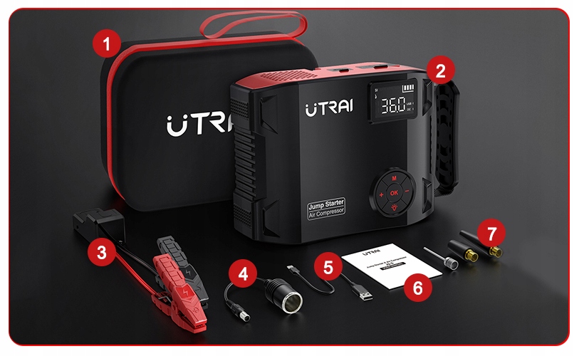 ▶️ Завантажувальний пристрій UTRAI Jstar 5 2000A 16000mAh + аксесуари.