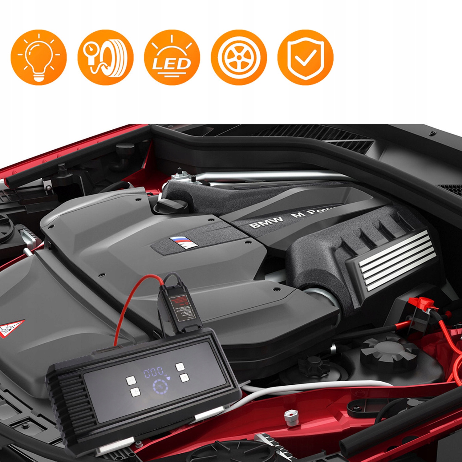 Піковий струм 6000 A. Легко заведіть будь-який автомобіль, мікроавтобус або мотоцикл за допомогою акумулятора 12 В.