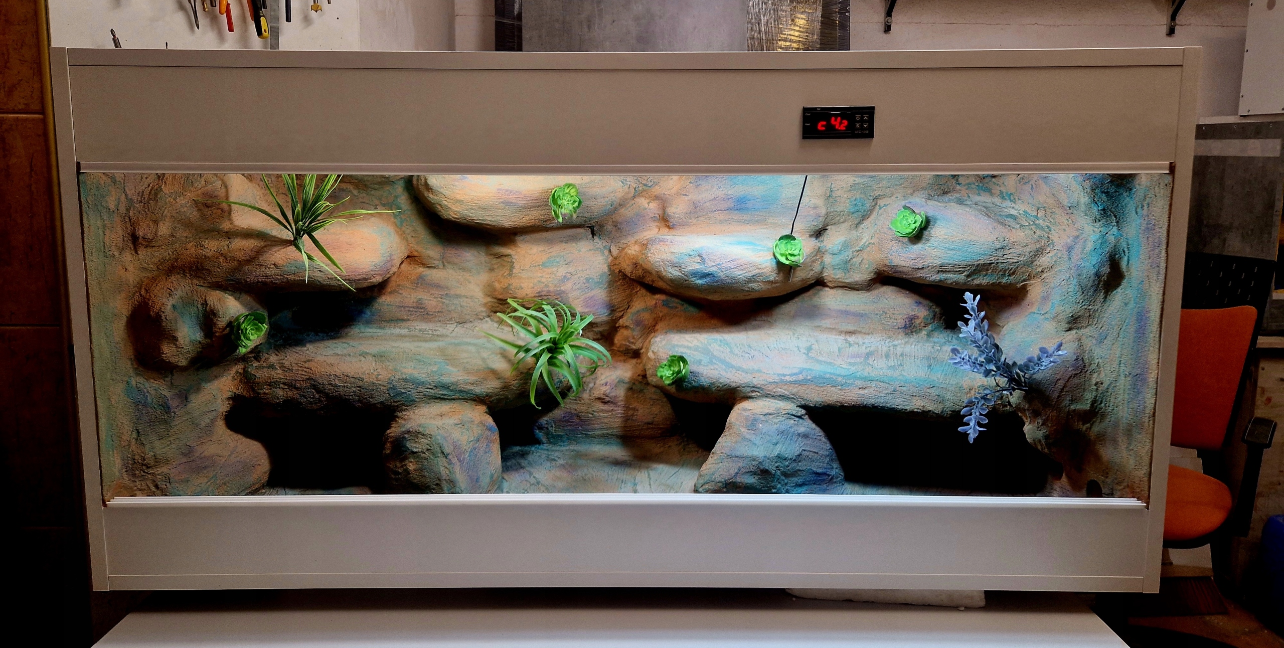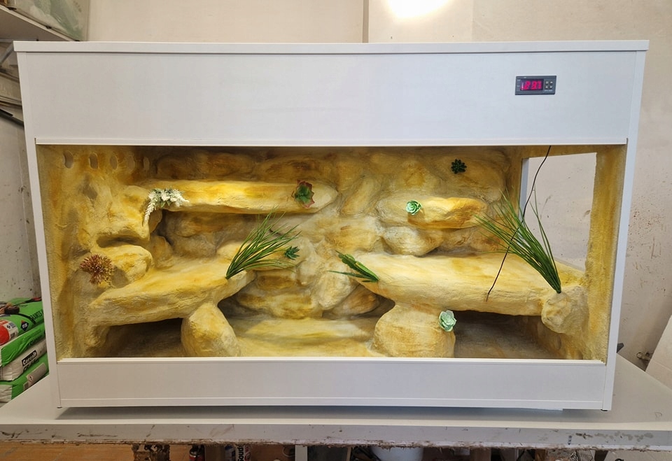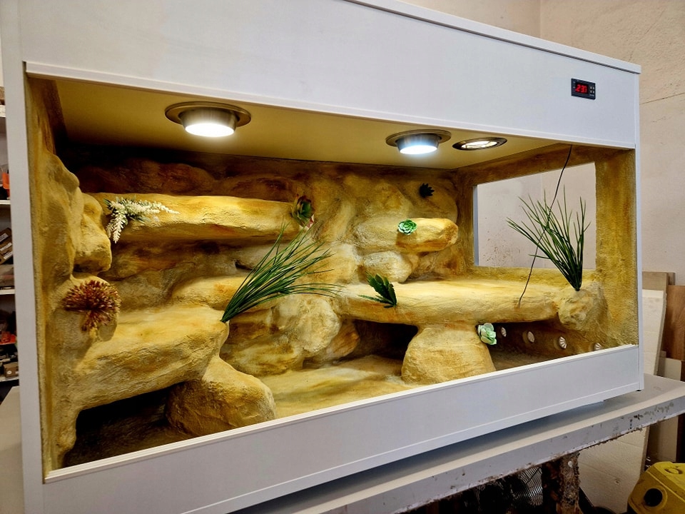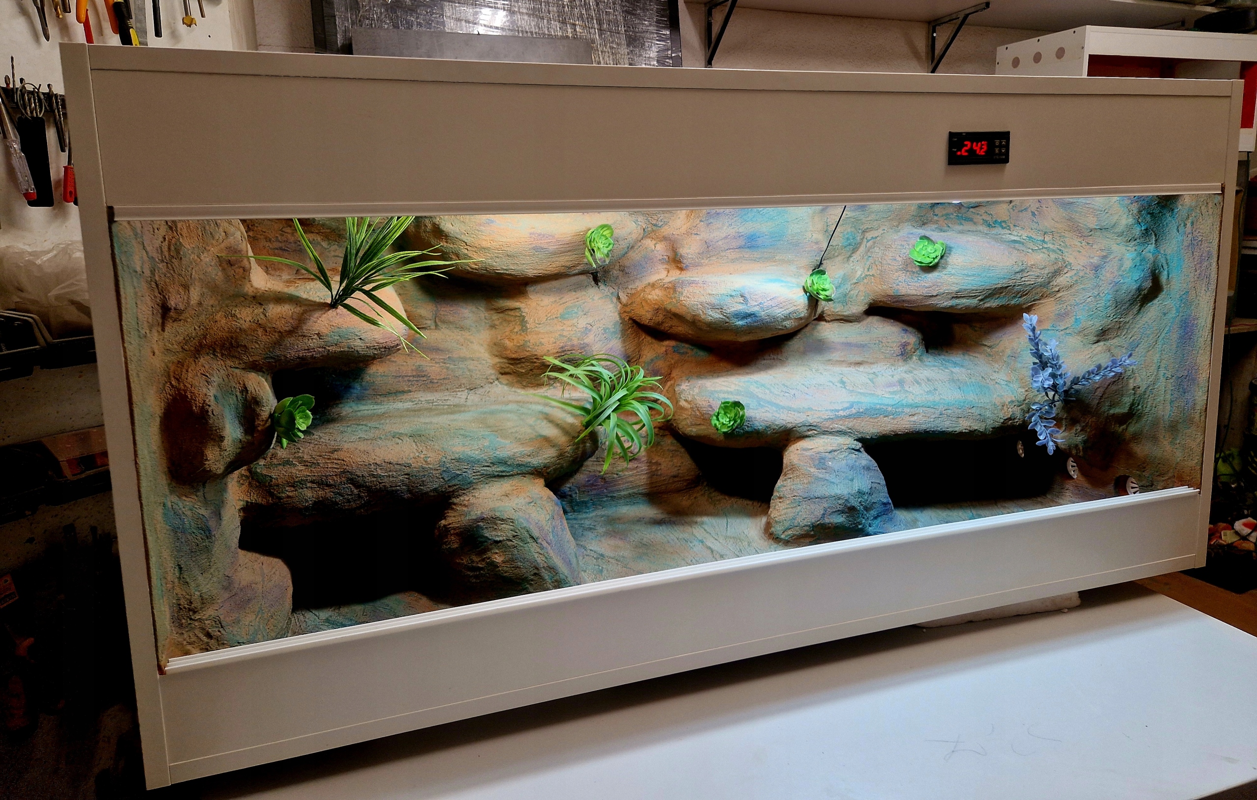 На фотографіях представлені тераріуми, виготовлені нами на індивідуальне замовлення і можуть бути зразком для наступних робіт. Тераріуми, які ви замовляєте, не будуть копіями представлених нижче, але вони можуть бути схожими. Ми будуємо кожен танк з нуля. Покупець може вибрати розташування каменів (якщо це можливо) і колір фону тераріуму.