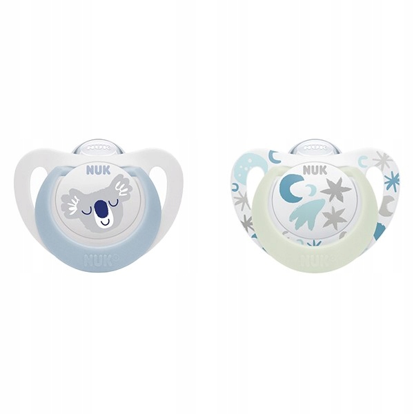 Силіконові пустушки NUK Star Night & Day оснащені фосфоресцюючим дизайном, який, окрім того, що це весело, полегшує малюкам пошук соски після пробудження. Ортодонтична форма цих льодяників NUK адаптується до порожнини рота дитини та сприяє тренуванню рота, язика та м’язів обличчя, що сприяє здоровому розвитку щелепи та зубів. Плоска форма соски також допомагає зменшити сліди від тиску та запобігти випаданню соски з рота вашої дитини. Система NUK Air System дозволяє сосці залишатися м'якою та гнучкою, сприяючи розвитку зубів вашої дитини. Ці соски NUK поставляються в дуже практичній коробці, яка дозволяє зберігати їх чистими у сумочці, кишені або на пеленальному столику та мати їх у своєму розпорядженні в будь-який час. Пластикову коробку також можна використовувати для стерилізації пустушки в мікрохвильовці. * Незалежне дослідження ринку 200 матерів, Німеччина, 2020