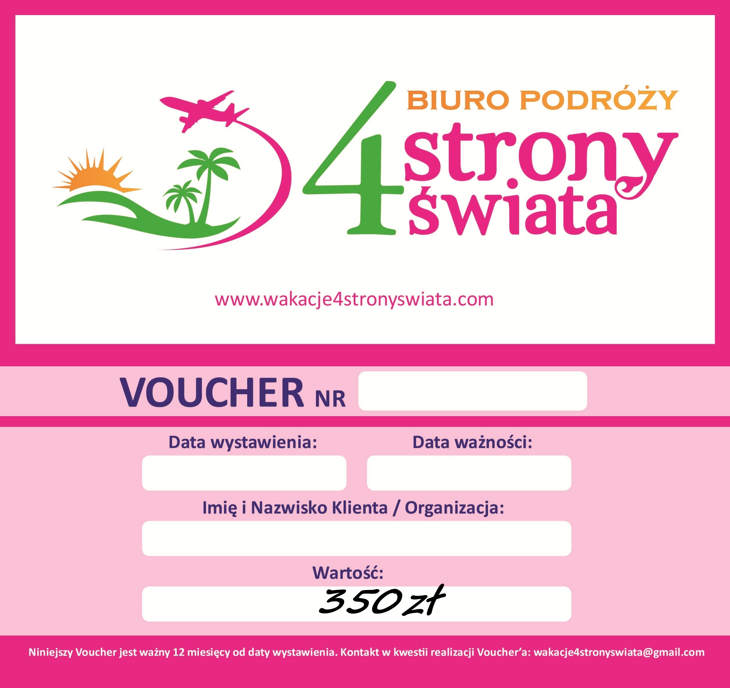 Ваучер на відпустку вартістю 350 злотих — для використання під час відпустки, ідеально підходить для планування відпустки та моменту відпочинку.