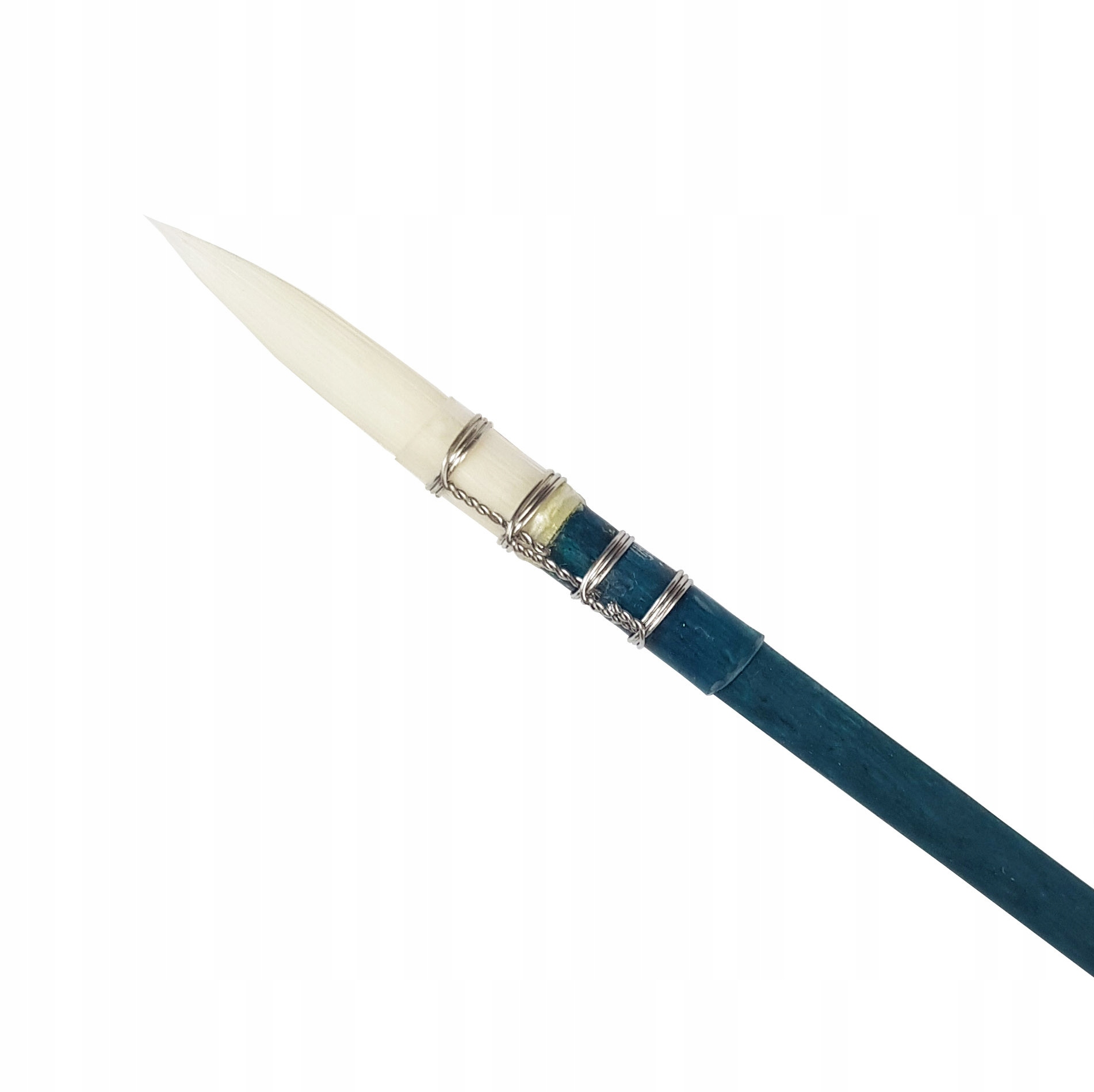 Синтетичні щітки з епохи Відродження з серії JRollb з білими щетиною в основному призначені для акварелі. Вони мають надзвичайно абсорбуючі, делікатні, м'які та гнучкі синтетичні щетини, розміщені в прозорі гірськості. Ручка виготовлена з дерева в Метті, інтенсивна бірюза. Через надзвичайно високу поглинання пензлі будуть ідеальними під час фарбування акварелями. Форма пензля дозволяє отримати ретельні, незначні деталі.