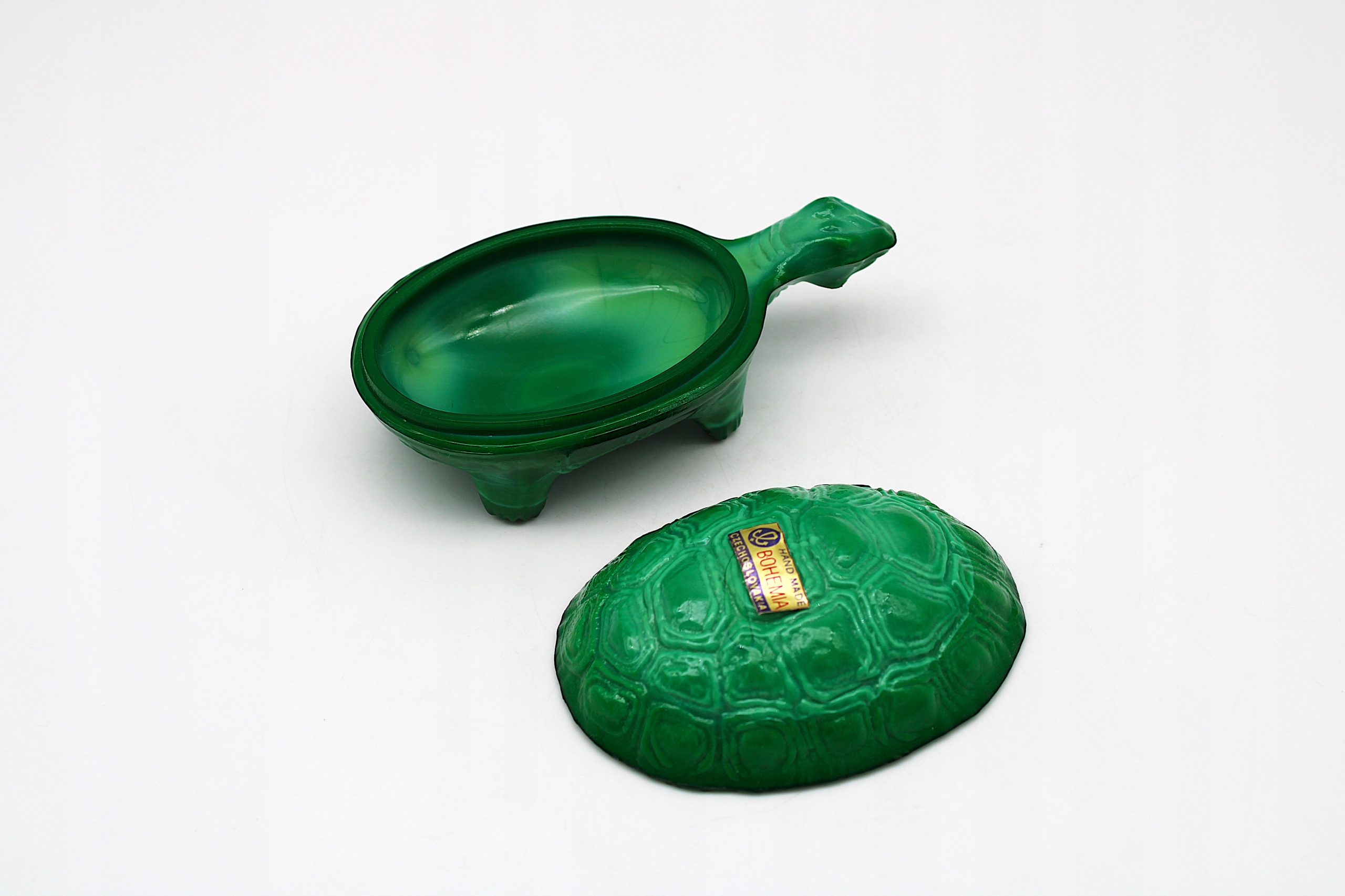 PUZDERKO SZKŁO MALACHITOWE BOHEMIA CURT SCHLEVOGT STARA CZECHOSŁOWACJA