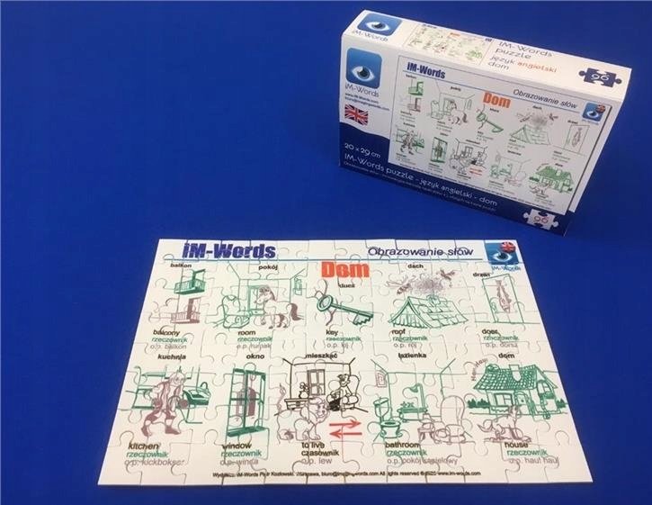 Пазли доповнюють пропозицію видавництва iM-Words і дозволяють поєднати задоволення від розгадування головоломок із вивченням іноземної мови за допомогою інноваційного методу iM-Words. Барвисті та незвичайні картинки з методу слів iM-Words у вигляді пазлів – чудова розвага під час навчання та відпочинок під час вивчення іноземної мови. Пазл складається зі 120 елементів і призначений для дітей від 8 років завдяки дрібним елементам. Кожен набір містить 10 слів із заданого поля на рівні А1. Пазли також чудові для тих, хто просто розважається їх складанням! Красива, барвиста картинка після складання головоломки не тільки радує око, але й закріплює словниковий запас даної мови. Отже, кожен має додаткову вигоду від вирішення головоломки. Природно, головоломки iM-Words зберегли основну перевагу всіх продуктів iM-Words, тобто вивчення слів і основ граматики за допомогою візуального методу ілюстрації слів!