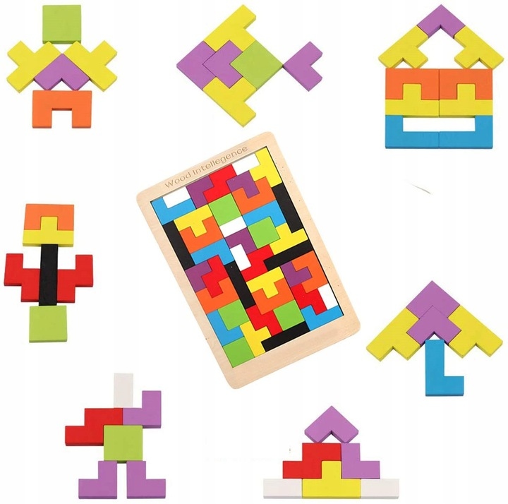 PUZZLE DREWNIANE UKŁADANKA TETRIS KLOCKI 40 ELEM