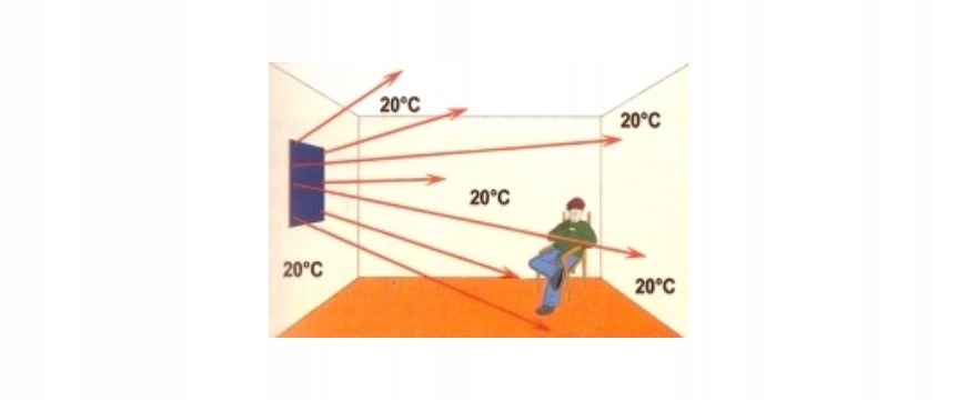 Випромінюване тепло нагріває стіни, стелю, підлогу, предмети та людей у кімнаті. Усе це збирає енергію та вивільняє її назад у кімнату.