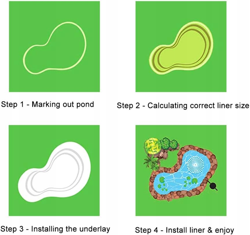 Простий у використанні: підкладка для рибного ставка є гнучкою, її можна легко згинати, щоб повторювати контури каменів у ставку, її також можна обрізати до потрібного розміру