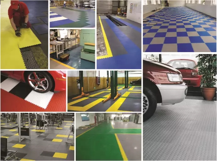 ПВХ складна підлога, паркет, килимок (пазл), незамінний в гаражі, автосалоні чи спортзалі; можна використовувати на всіх типах ярмарків і виставок. Мінімізує ризик пошкодження підлоги та запобігає подряпинам на поверхні. Має протиковзкі властивості, гасить вібрацію та заглушує приміщення, забезпечує теплоізоляцію.