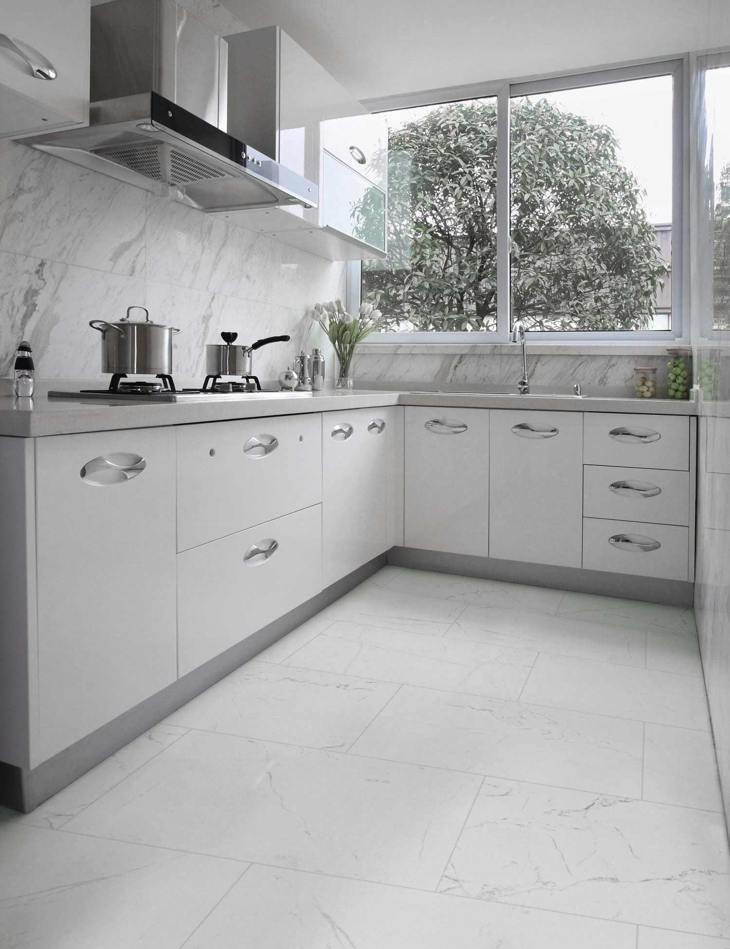 Рулон ПВХ Gumolite Flooring Tile Pattern Marble Thick Home 4m wide White
