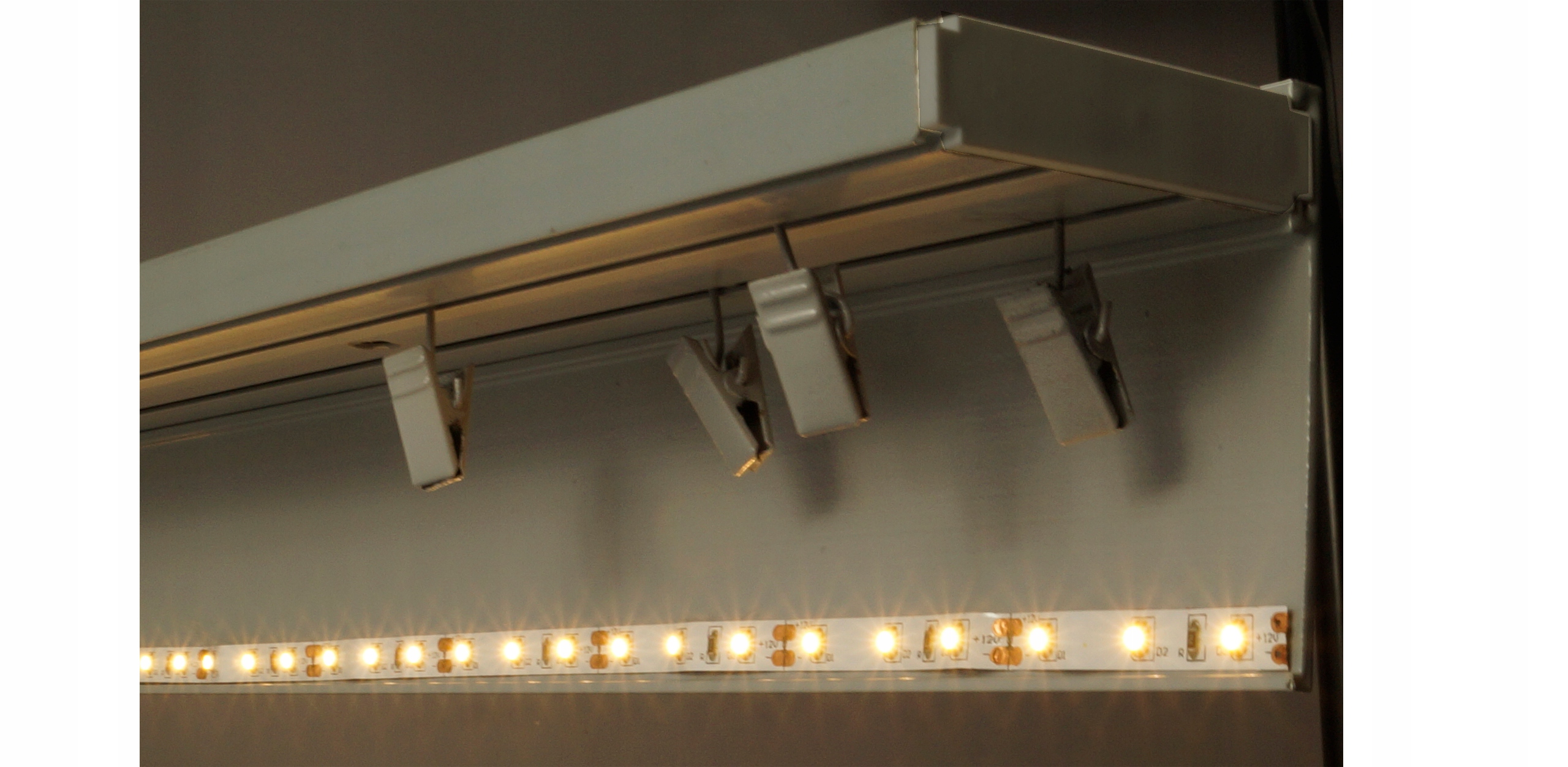 На решітці є місце для наклеювання стрічки з LED діодами, що підсвічують штори (в комплект не входить).