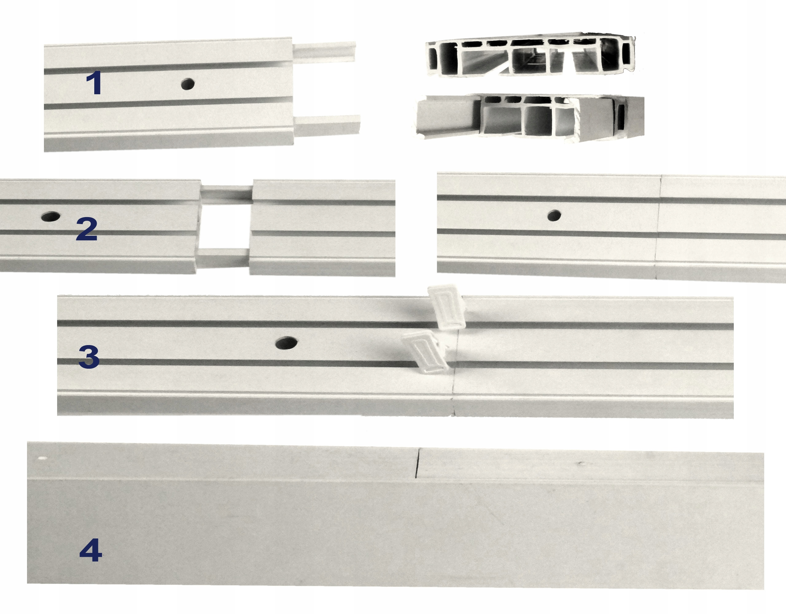 - З'єднувачі вставляються в профільні канали, які не використовуються жабками (1), посилюючи з'єднання;