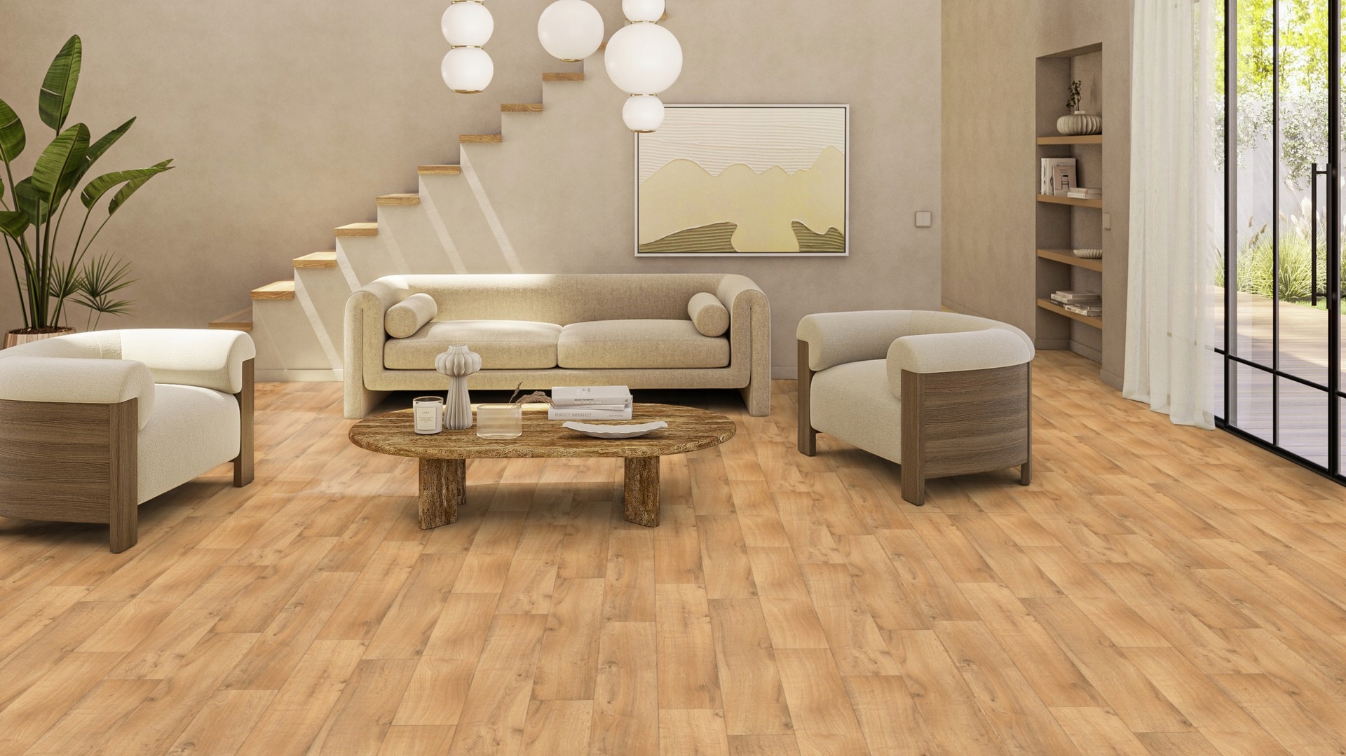 Підлога виготовлена з полівінілхлориду, також відомого під коротшим іменем ПВХ. Товщина запропонованого вкладиша - 2,8 мм , а функціональний шар 0,35 мм , призначений для віталень із середньою та високою інтенсивністю руху . Сильний - стійкий до вм'ятин та заломлення , і УФ -промені .