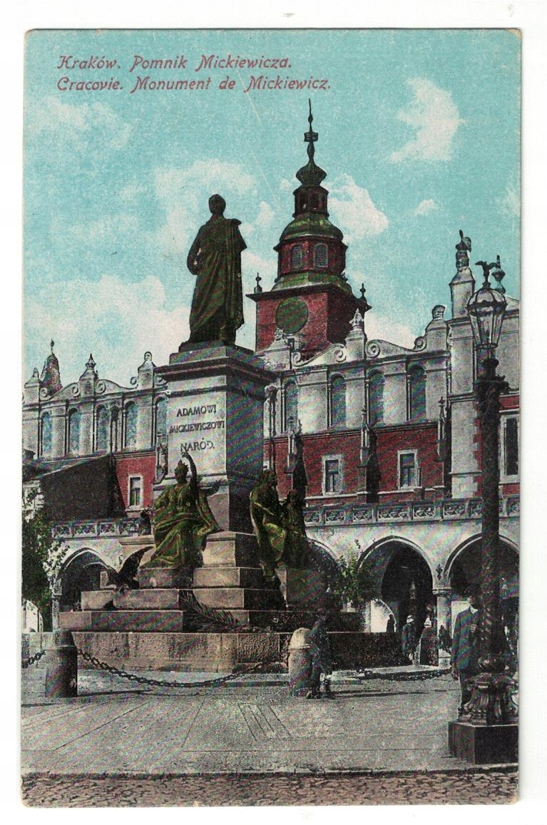 Польська листівка 1919 року. без тиражу, з теми - польські міста - Краків - Ринок, Пам'ятник А. Міцкевичу. Стан листівки за шкалою від 1-5 до 4