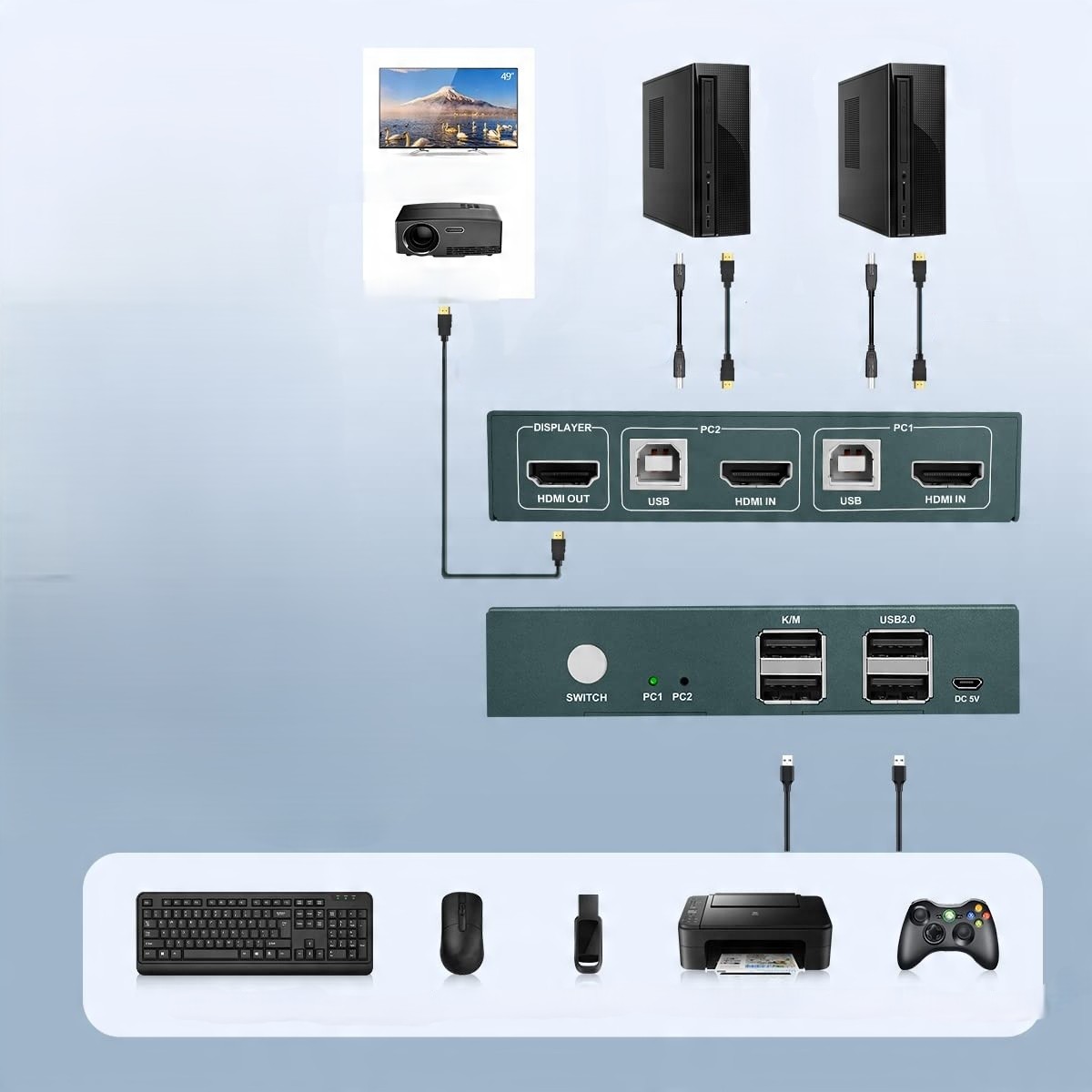- KVM HDMI Switch 2 в 1 вихід - Завдяки цьому перемикача монітора комп'ютера Ви можете поділитися клавіатурою, мишею та монітор та зберегти місце. Проста установка, підключення та гра. Увімкніть сигнал зручно і швидко. Найкращий вибір для підвищення ефективності роботи.