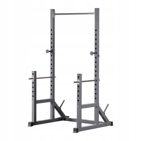 Максимальне навантаження: 200 кг, вага: 62 кг, оснащена нековзкими ніжками, спеціальною штангою та регульованими тримачами для штанг.