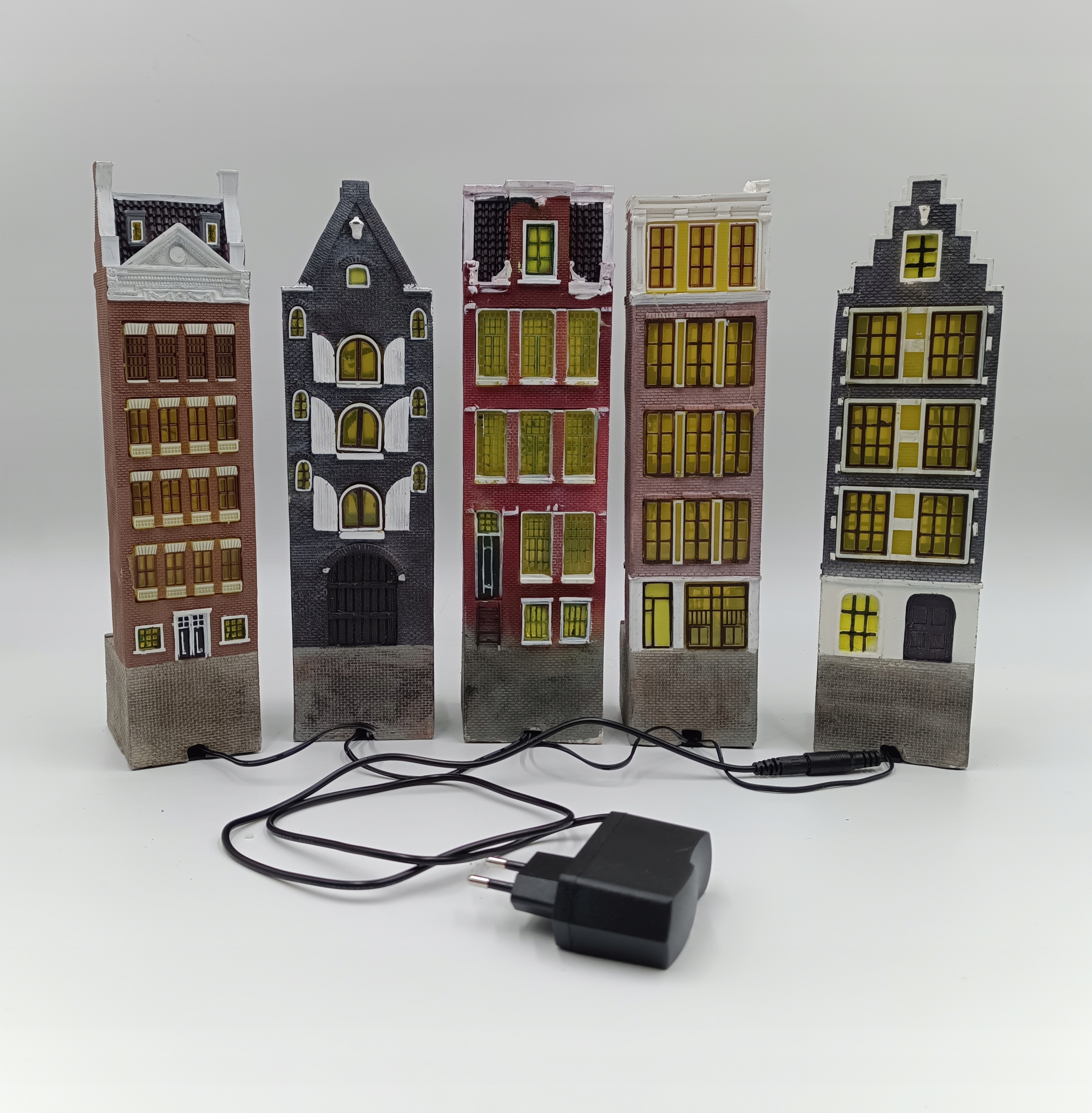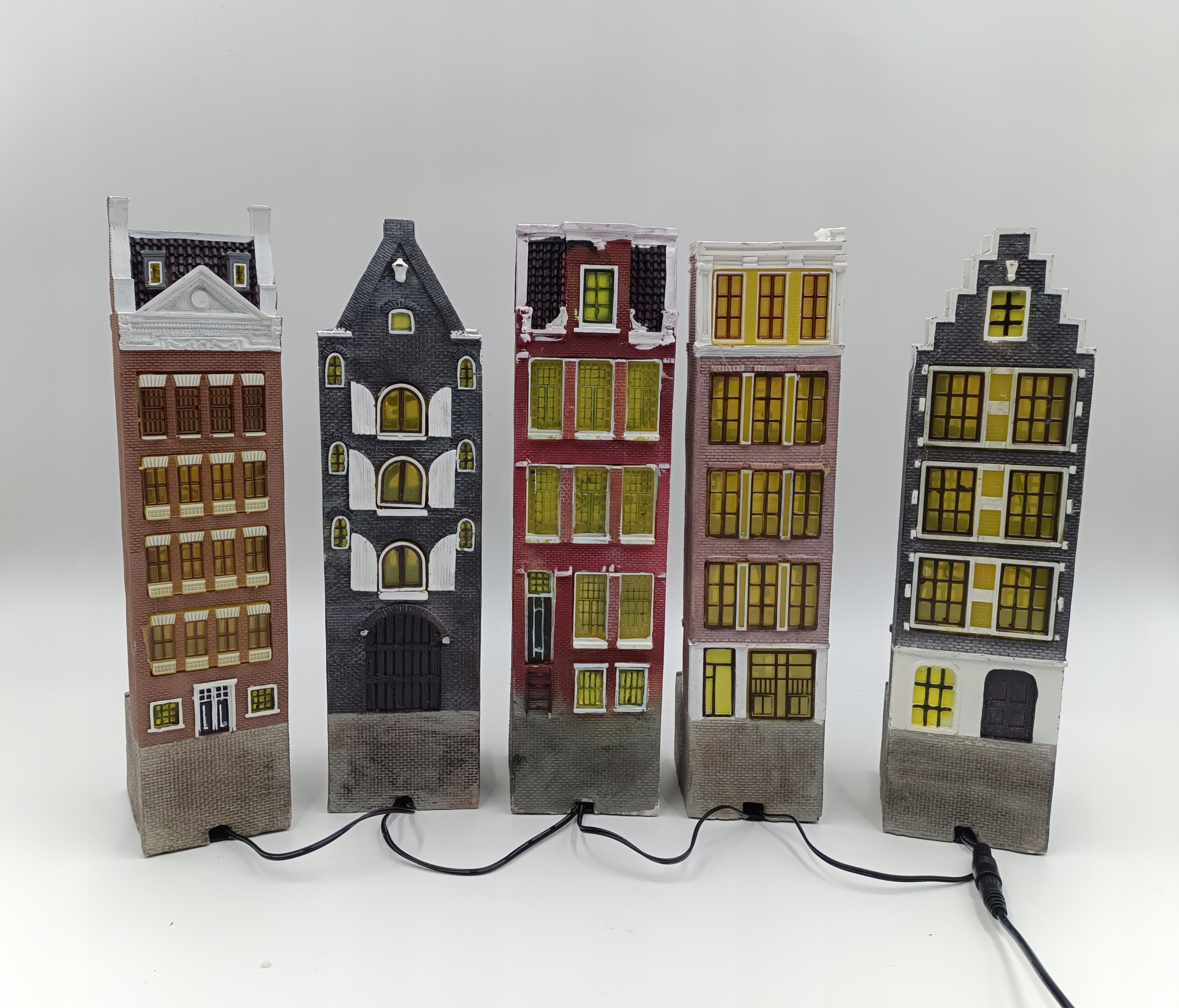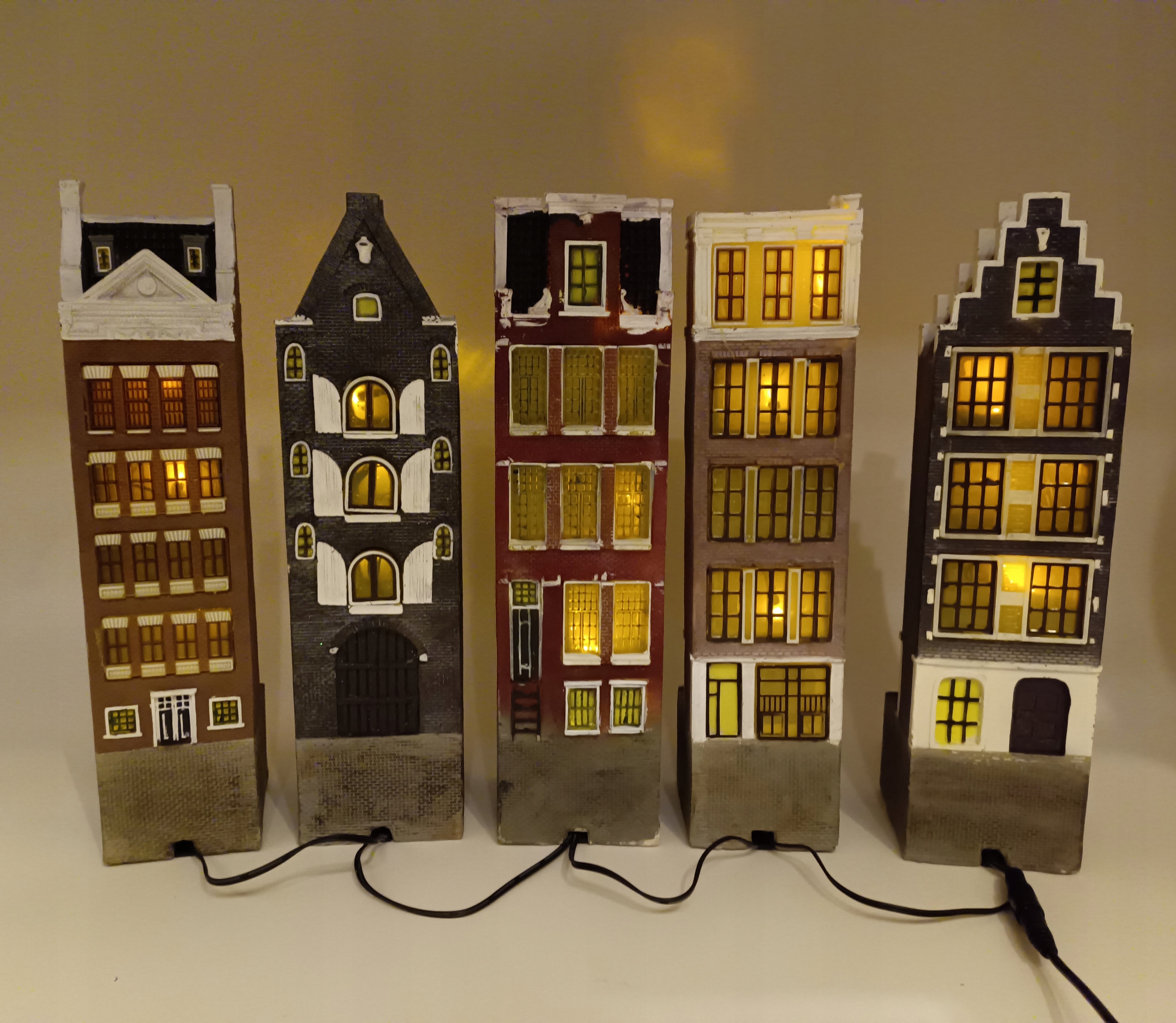 П'ять (5) багатоквартирних будинків з підсвічуванням, висотою 28 см, з'єднаних послідовно - чудово!