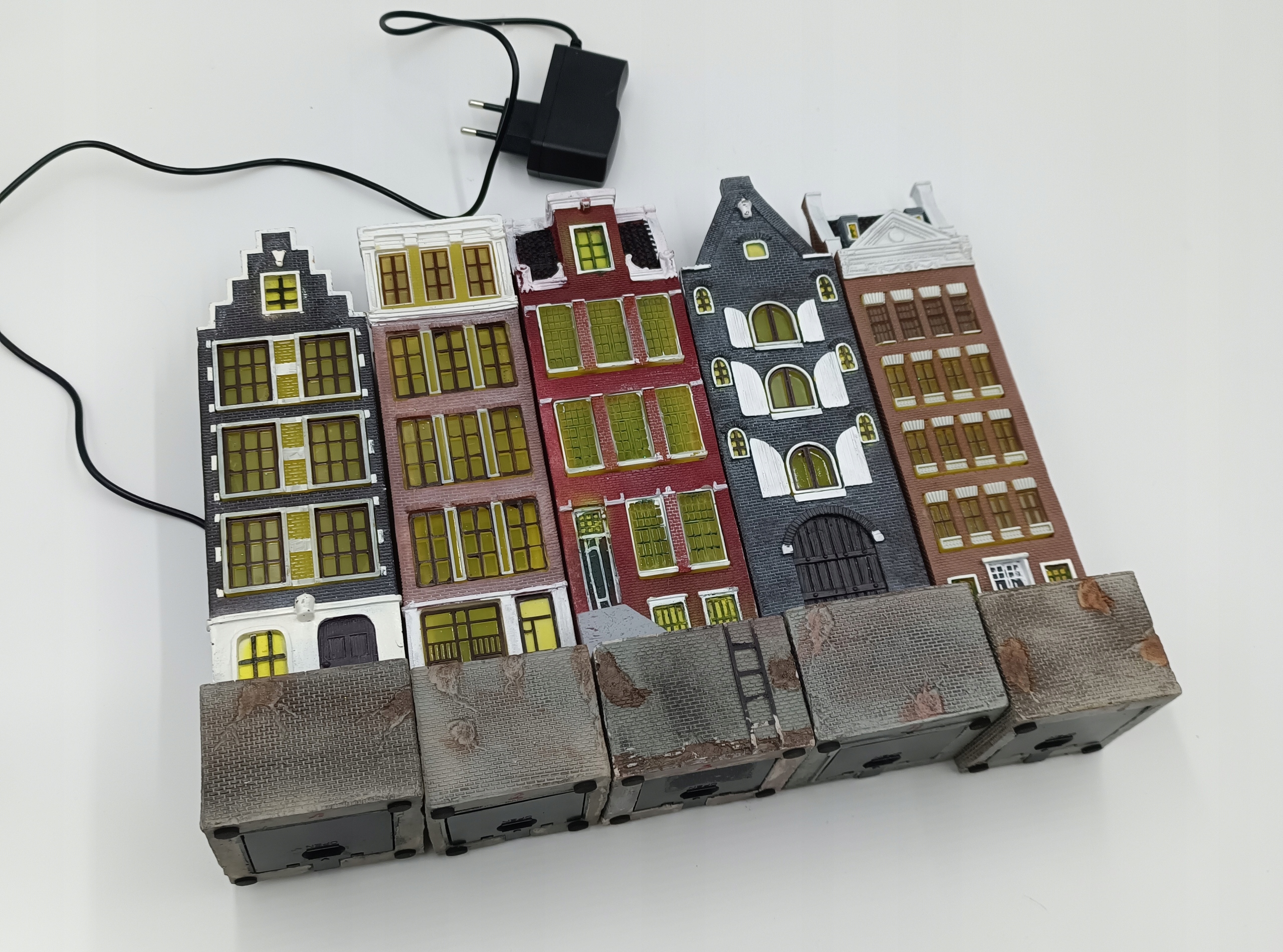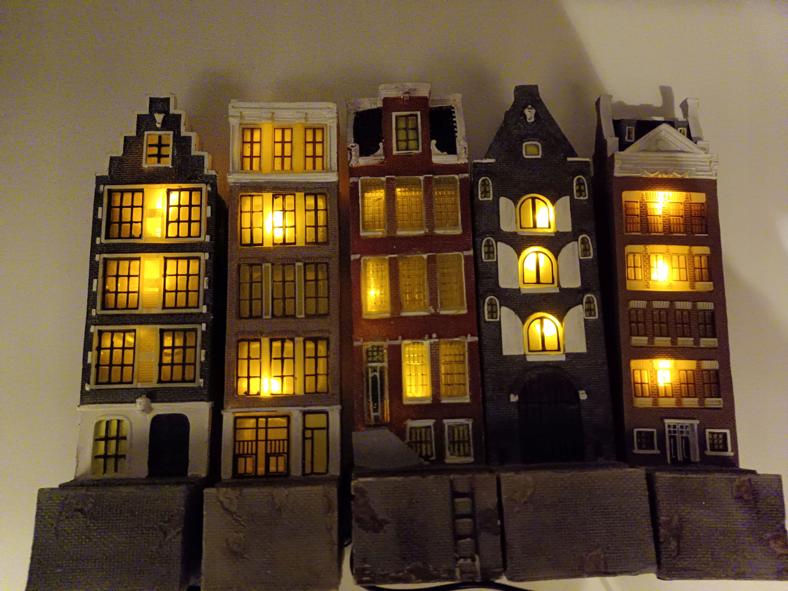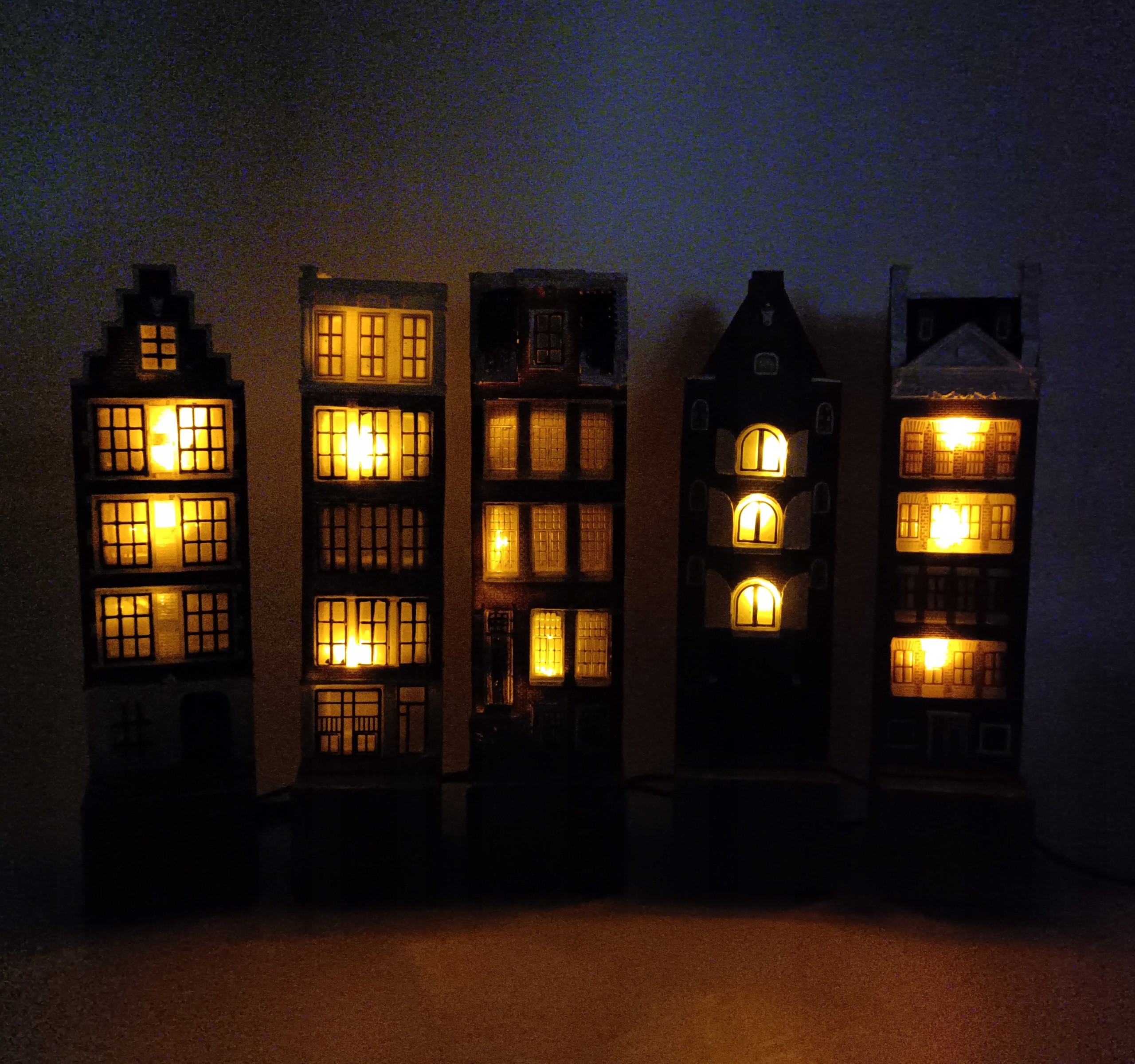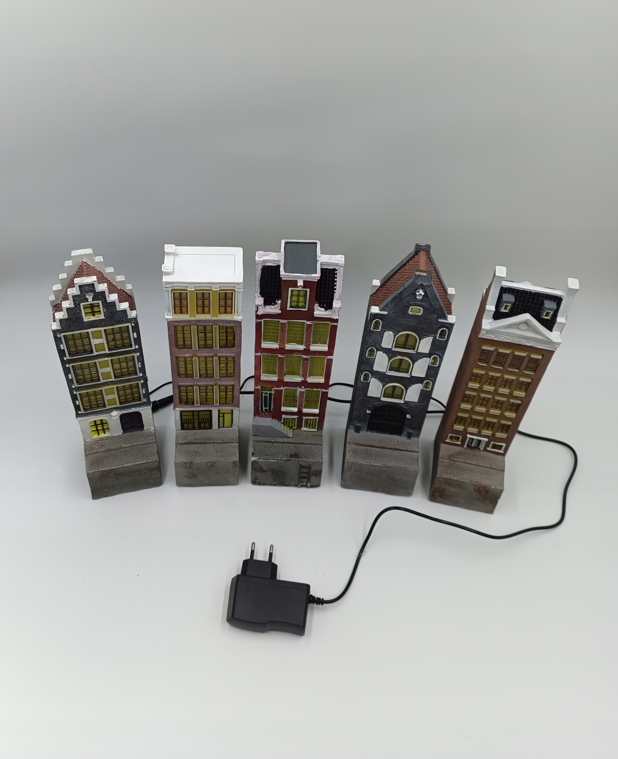П'ять (5) багатоквартирних будинків з підсвічуванням, висотою 28 см, з'єднаних послідовно - чудово!