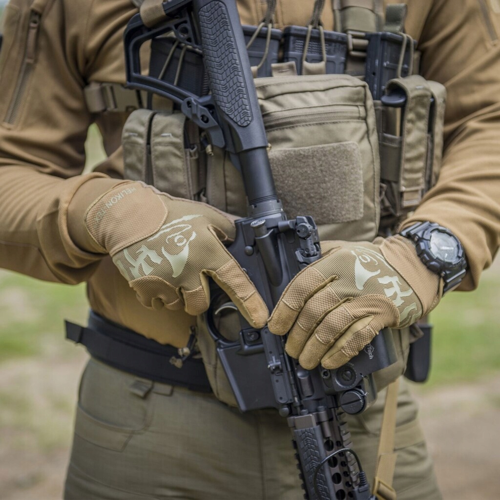 Тактичні рукавички, ідеальні для стрільців, поєднують легкість та дихання. Їх тривимірна форма імітує природну кривизну руки, а гнучкі елементи гарантують комфорт, навіть коли ви готуєте до пострілу. Конкретні порізи з боків пальців покращують зручність при тривалому використанні.