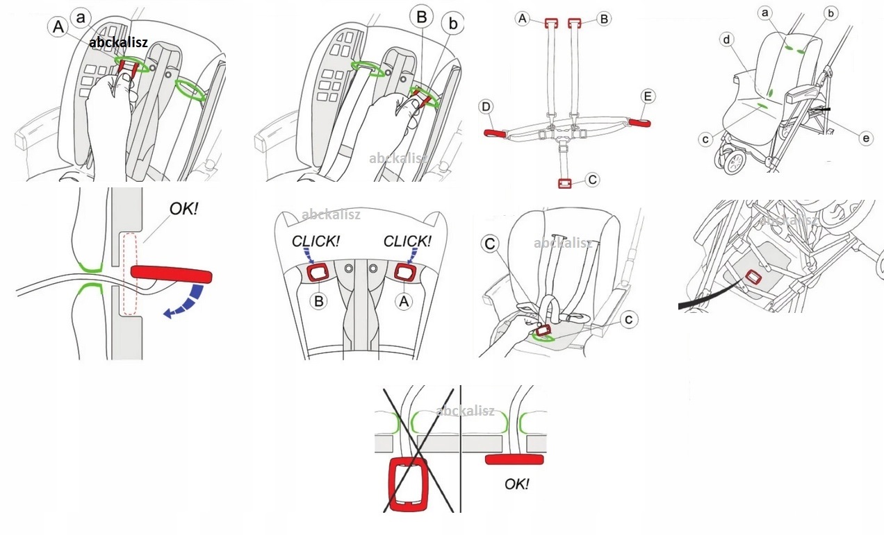 Перевірте перед покупкою, чи є у вашій колясці п'ятиточкові ремені та чи можна їх затягнути. пряжки через отвори на стегнах і на спинці коляски.