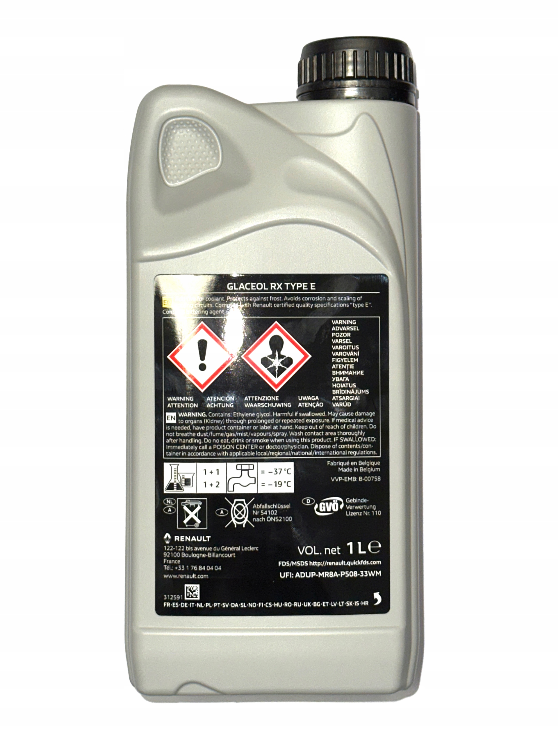 Оплачивая «PŁYN DO CHŁODNIC RENAULT GLACEOL RX TYPE D 1L KONCENTRAT ORYGINAŁ», вы можете быть уверены, что данный товар из каталога «Охлаждающие жидкости» будет доставлен из Польши и проверен на целостность. В цене товара, указанной на сайте, учтена доставка из Польши. Внимание!!! Товары для Евросоюза, согласно законодательству стран Евросоюза, могут отличаться упаковкой или наполнением.