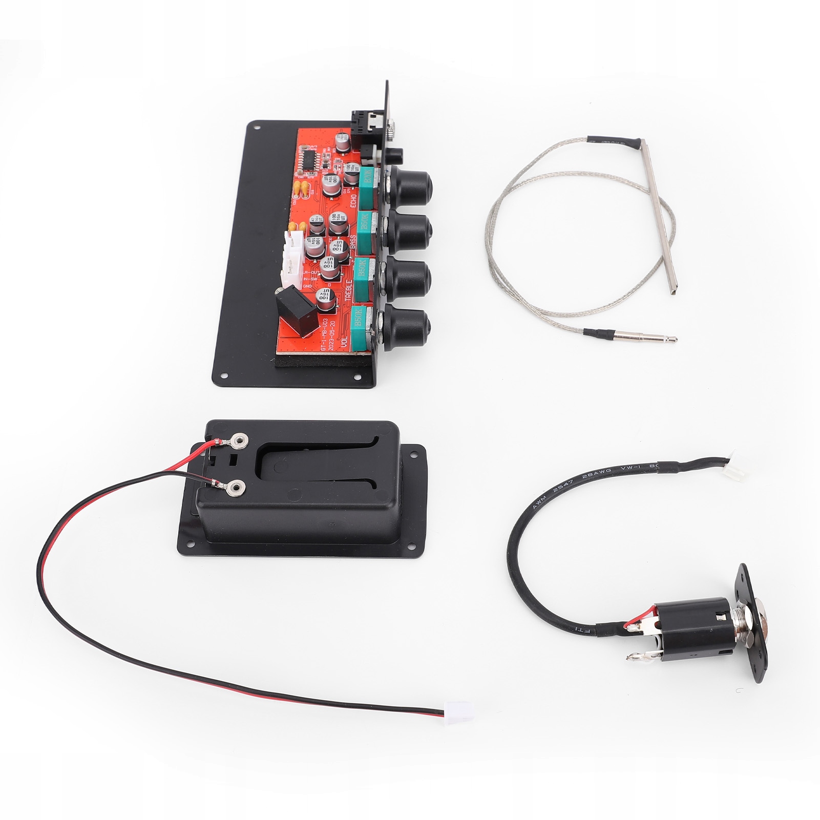 3. Багатовимірне регулювання тембру: завдяки різноманітним можливостям модуляції звуку, цей набір гітарних звукознімачів дозволяє легко контролювати налаштування гучності, висоти та низьких частот, дозволяючи вам адаптувати свій тембр відповідно до різних стилів гри.