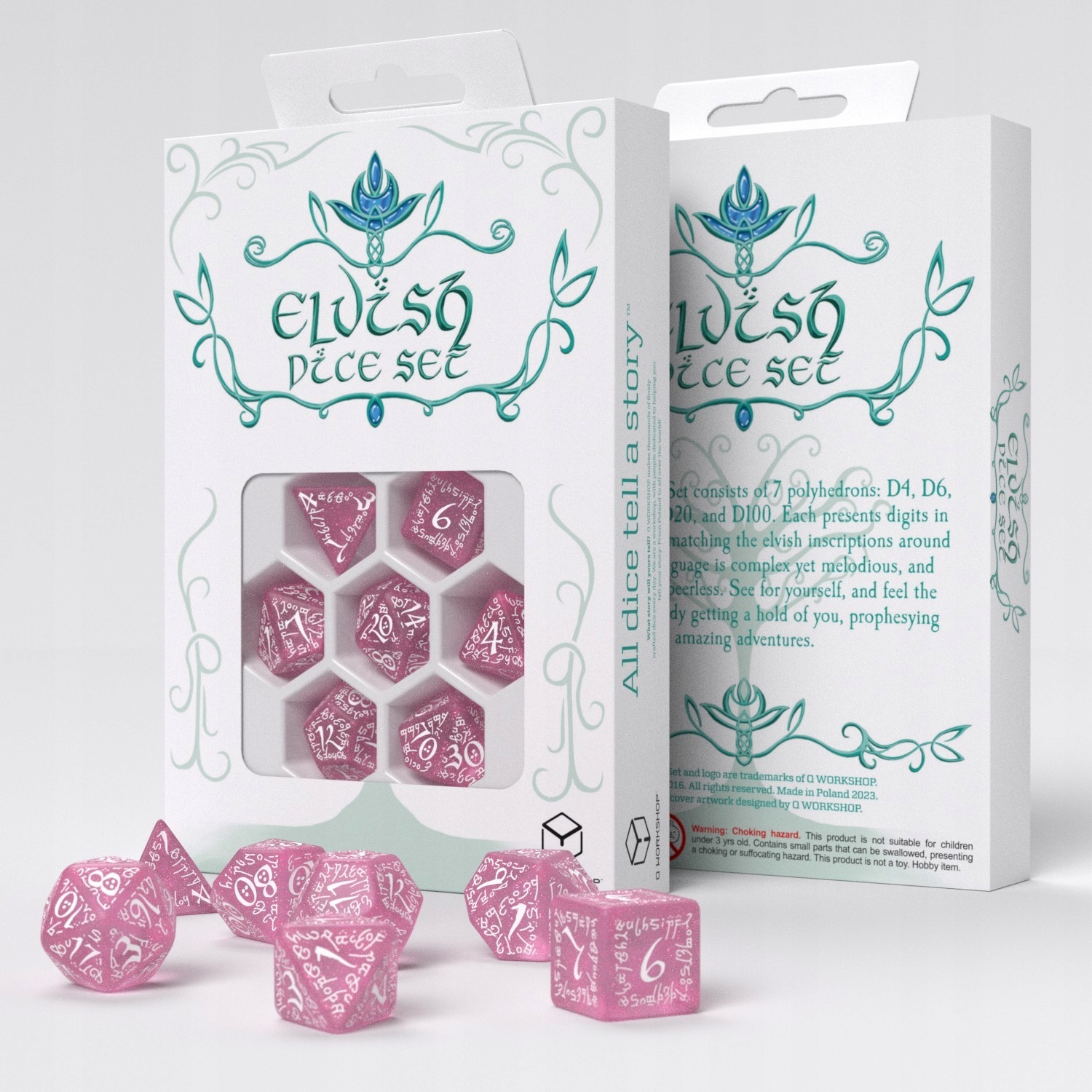 Q workshop Kości RPG Elfickie Błyszczące Różowo Białe