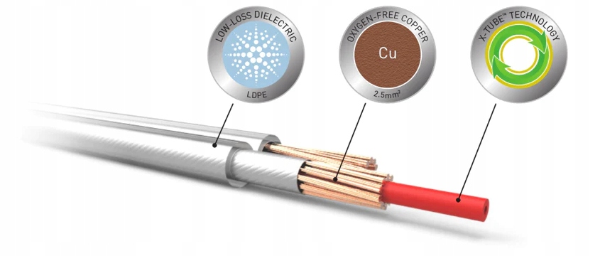 Збільшення поділу кабелів всередині кабелю, і, таким чином, кількість повітря між ними QED створив дієтичний проміжок повітря з низькими втратами . Ця технологія знижує характеристики розсіювання та ємність кабелю , а також забезпечує численні чутні вдосконалення - особливо стосовно годинника та ритмічної точності . Незважаючи на цей збільшений інтервал, XT40i зберігає тип поля поперечного розряду, що робить його ідеальним для довгих кабелів .