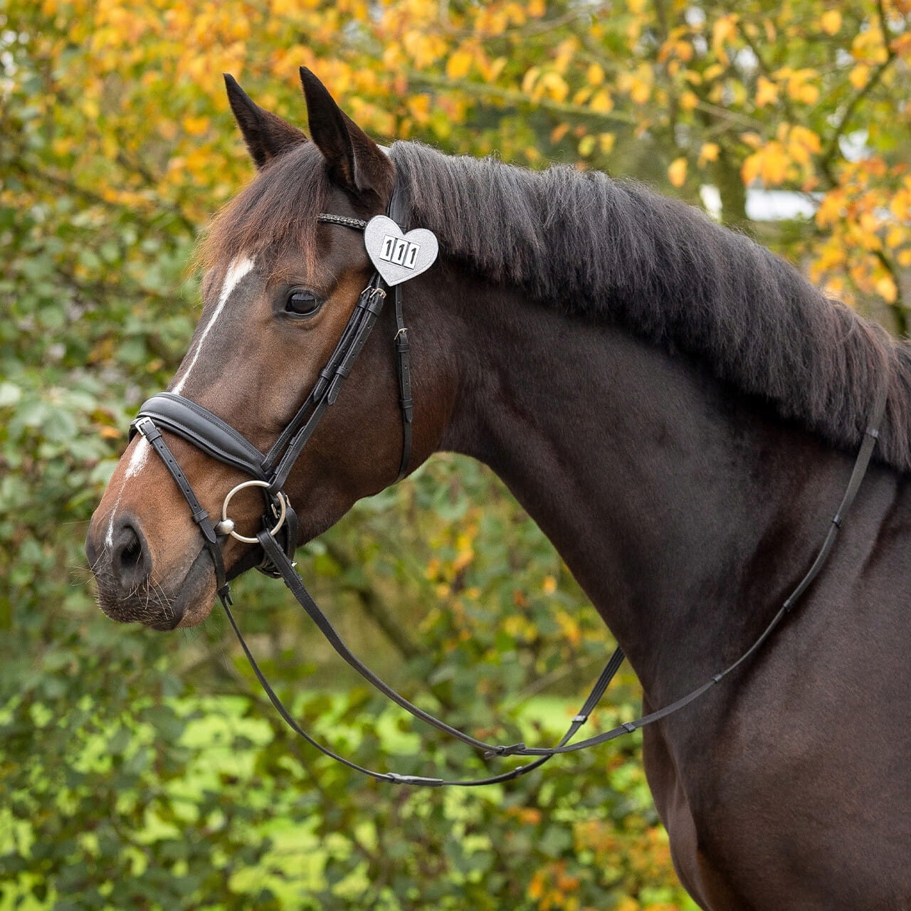 - Стартовий номер у формі серця: привертає увагу та додає шарму вашому спорядженню для верхової їзди.