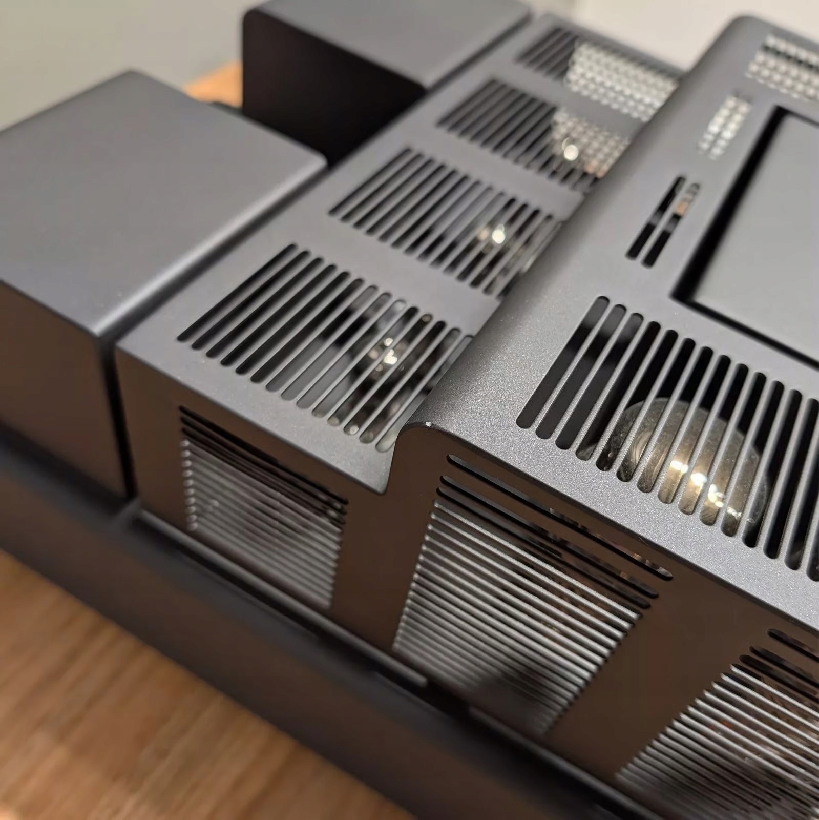 Якість виготовлення є бездоганною як всередині, так і зовні, що можна очікувати від Quad. Внутрішні компоненти були ретельно відібрані, щоб забезпечити, щоб VA-One+ зберігав незмінний девіз компанії "найближчий до оригінального звуку" (найсміливіший оригінальний звук), а зовнішній стиль є класично квадроциклом, закінченим у традиційному "Ланкастер-сірому". Передня панель підсилювача має плавно робоче регулювання гучності з вбудованим потенціометром двигуна, що дозволяє точно регулювати, використовуючи приєднаний пульт дистанційного керування, а також високоякісні елементи навушників та елементи управління для вибору з входу Bluetooth та випаровування. Чудовий, ретро -шарм світильників, слухаючи музику з усіх видів сучасних пристроїв, таких як смартфони, планшети та комп’ютери.