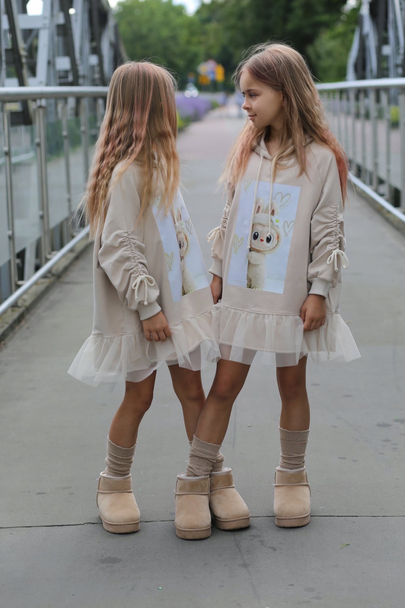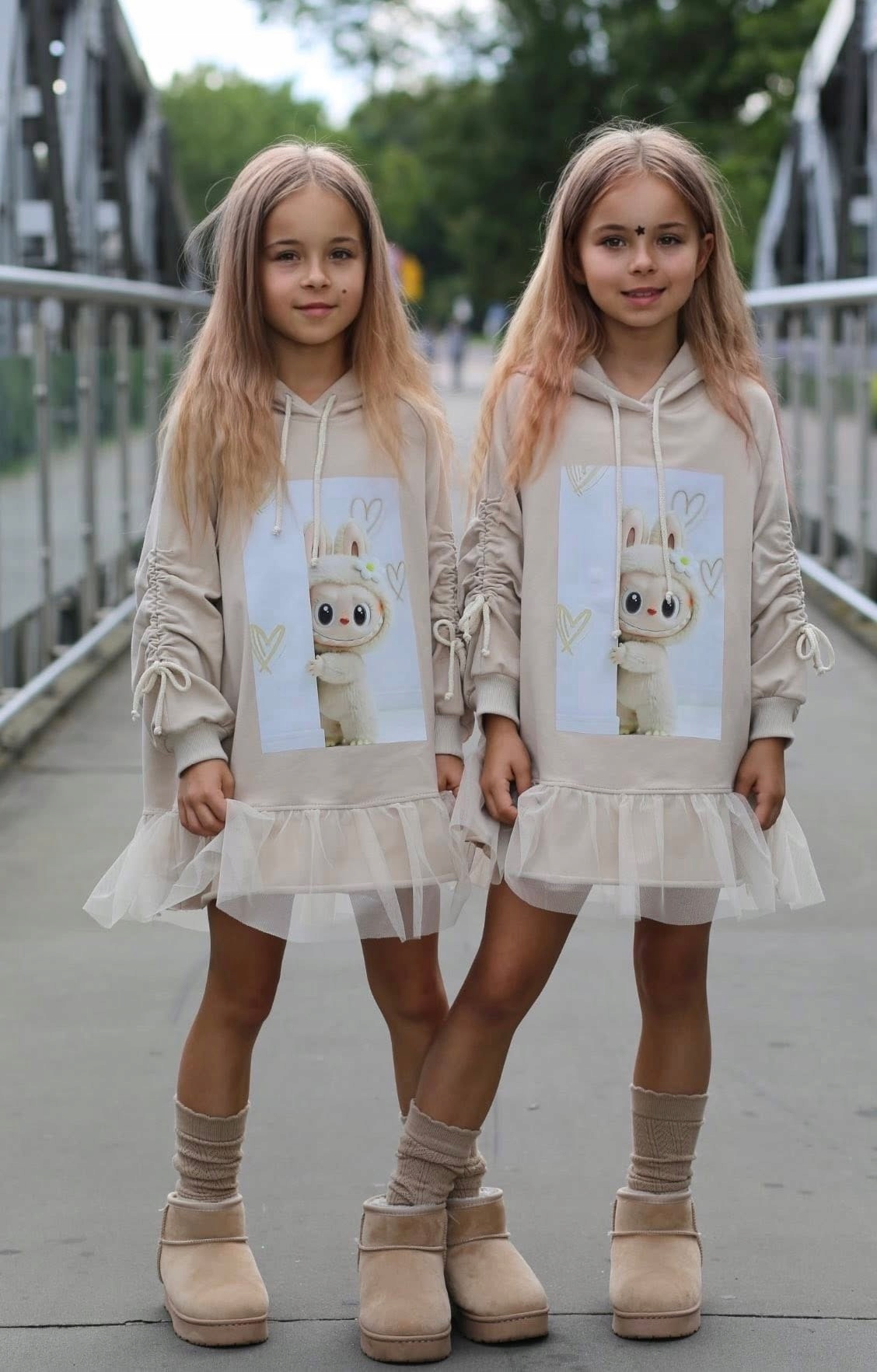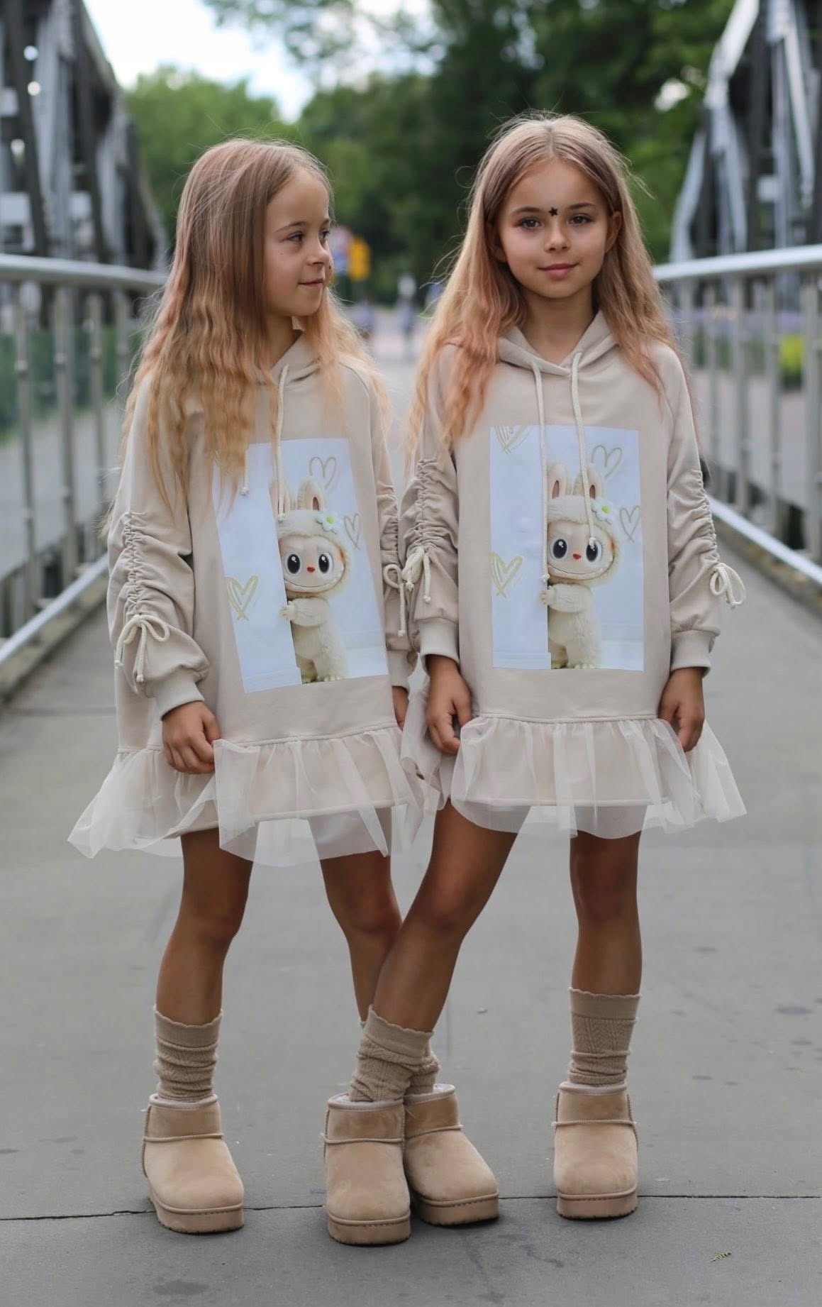 - це не просто плаття - це стилька, яка приваблює зовнішній вигляд. Делікатний бежевий, тюль -дно та улюблений друк Labub. Дівчата, комфортно та з персонажем. Ідеально підходить щодня та для особливих випадків. Основні переваги