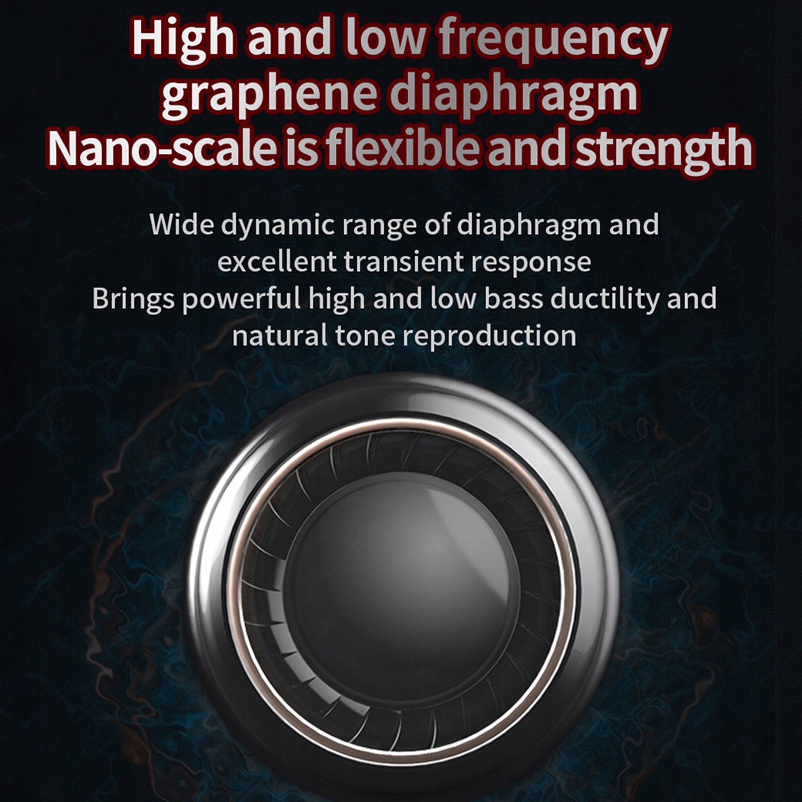 - Високо- та низькочастотна динамічна графенова котушка, висока та низька зменшення плазми, відновлення природного звуку.