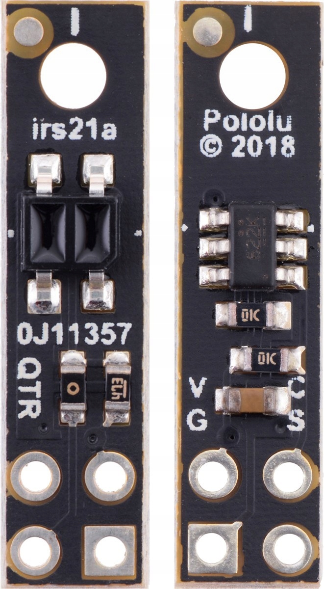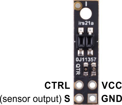 Датчик оббивки, що складається з одного оптрона типу QTR з можливістю керування яскравістю інфрачервоного випромінювання СВІТЛОДІОДНИЙ. Модуль може живитися напругою від 2,9 В до 5,5 В і, незалежно від напруги живлення, споживає струм до 32 мА. Оптимальна відстань датчика від землі - 5 мм, а максимальна - 30 мм. Модуль ідеально підходить для виявлення змін у відбитті світла, тому його можна використовувати для виявлення країв землі або відстеження ліній у роботах, що слідують за лініями.