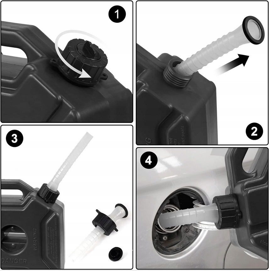 Каністра виготовлена з надзвичайно міцного матеріалу. Кришка, що загвинчується, оснащена безпечним гумовим ущільнювачем, встановленим на знімній воронці. Гарантована герметичність дозволяє транспортувати його без ризику випадкового забруднення та проливання. З протилежного боку кришки заливної горловини є вентиляційна пробка - вона зменшує повітря та розбризкування під час заливання палива.