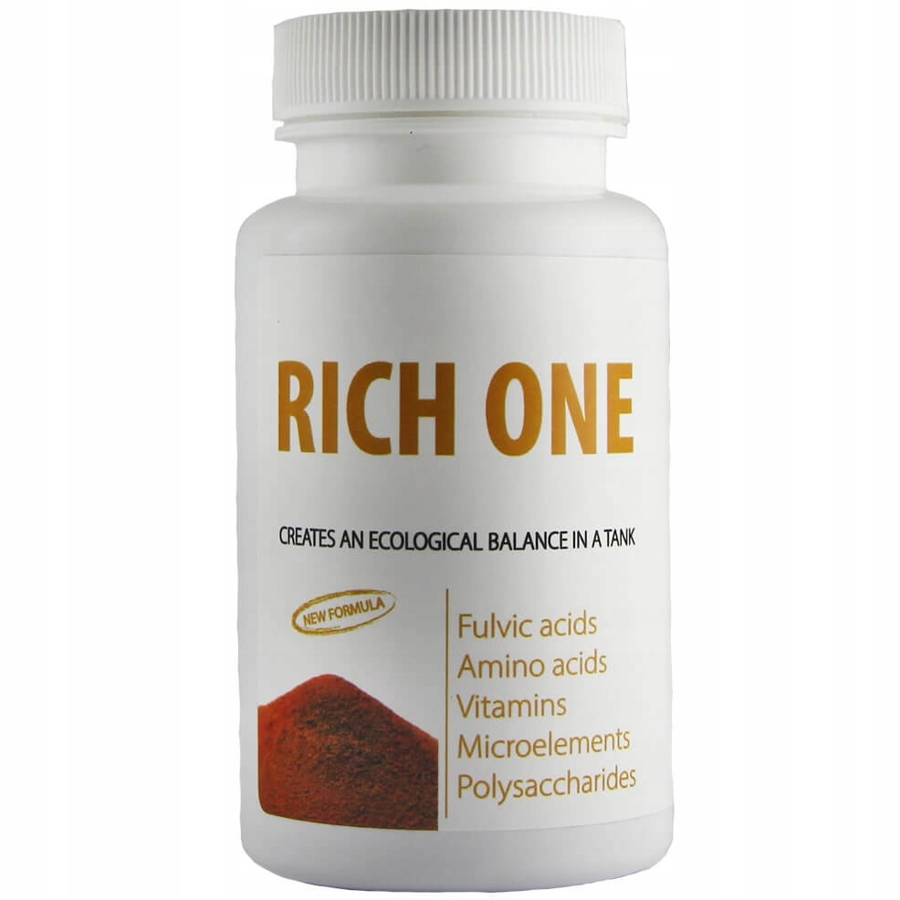 Фульвокислоти, що містяться в ньому, прискорюють і полегшують транспортування мінералів і вітамінів до клітин і підвищують засвоєння поживних речовин. Вони також мають дуже сильні антиоксидантні властивості. Антиоксиданти, також відомі як антиоксиданти, виводять надлишок вільних радикалів з організму. Вони не тільки покращують здоров'я, а й уповільнюють процеси старіння організму і запобігають розвитку багатьох захворювань. Це дуже впливає на гарний стан таких ніжних істот, як креветки. Сучасна формула, яка також включає, серед іншого, амінокислоти та мікроелементи, сприяє розвитку планктону в акваріумі та підтримує створення та стабільність біологічної рівноваги. Rich One можна використовувати як у типових акваріумах для креветок, так і в акваріумах для рослин.
