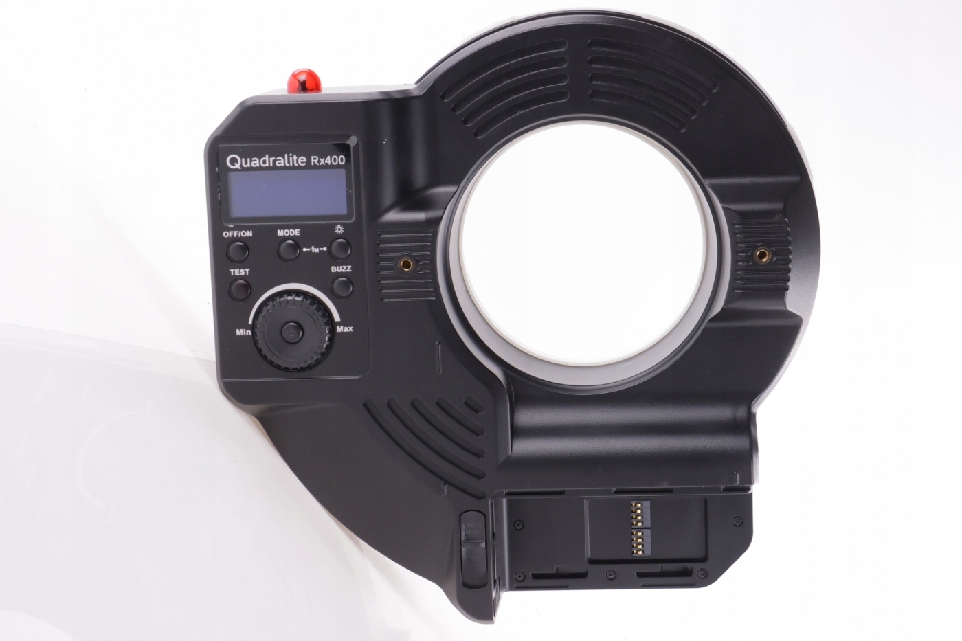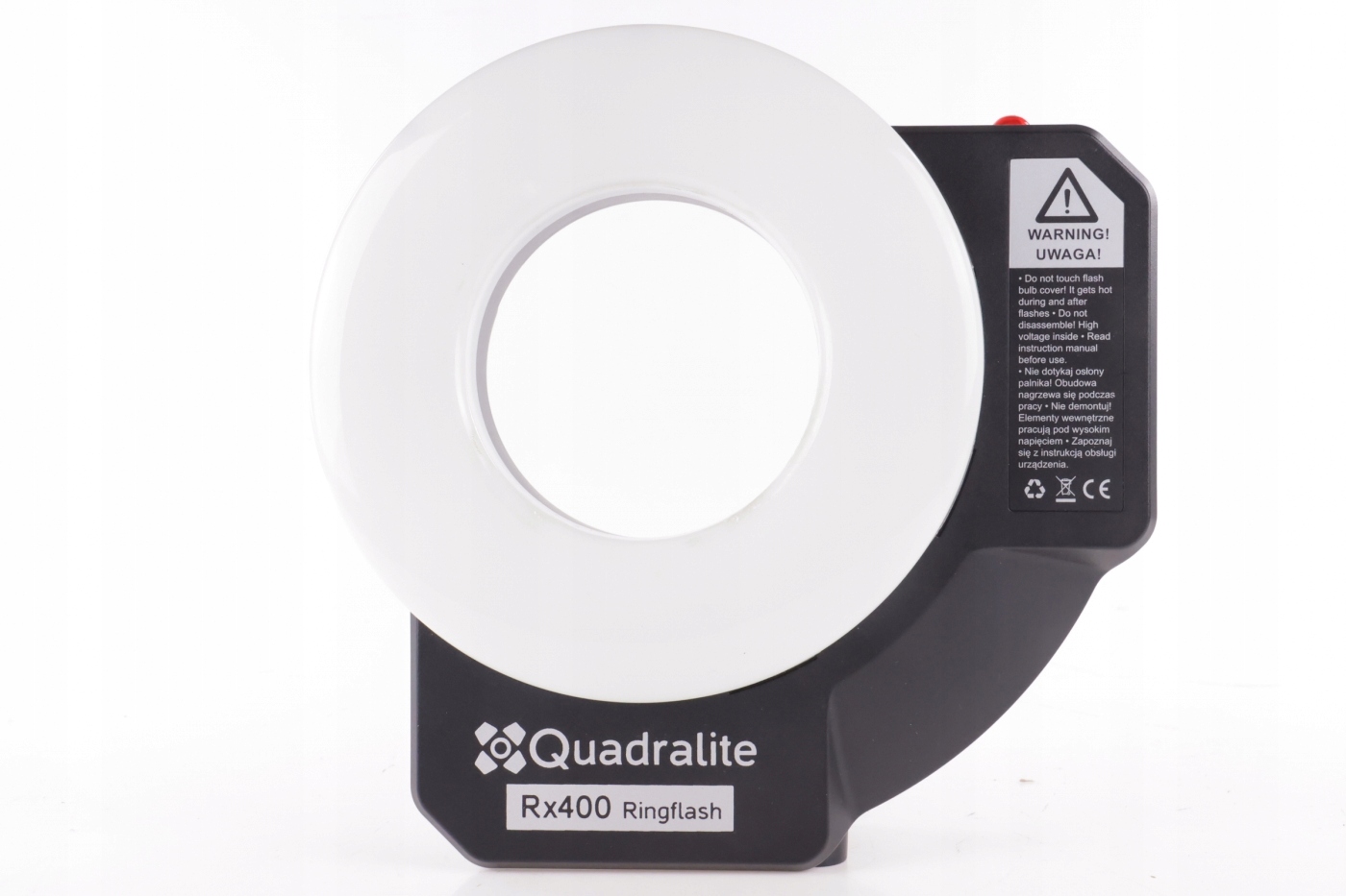 Лампа Quadralite Rx400 Ringflash оснащена металевим тримачем з регульованим положенням, призначеним для кріплення камера. Він оснащений стандартним гвинтом для штатива 1/4"-20, сумісним з усіма камерами. Внутрішній діаметр кільця лампи становить 95 мм, що дозволяє вільно використовувати її навіть із середньоформатними об'єктивами. Це дає більше можливостей використання лампи та адаптації її до потреб вибраних знімків.