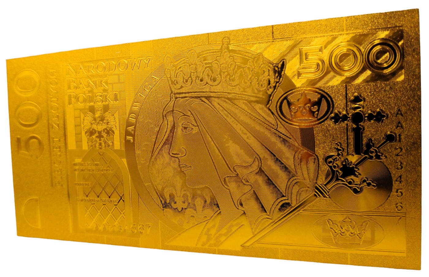 QUEEN HEDWIGA 500 ZŁOTYCH Унікальна позолочена банкнота GOLD версія
