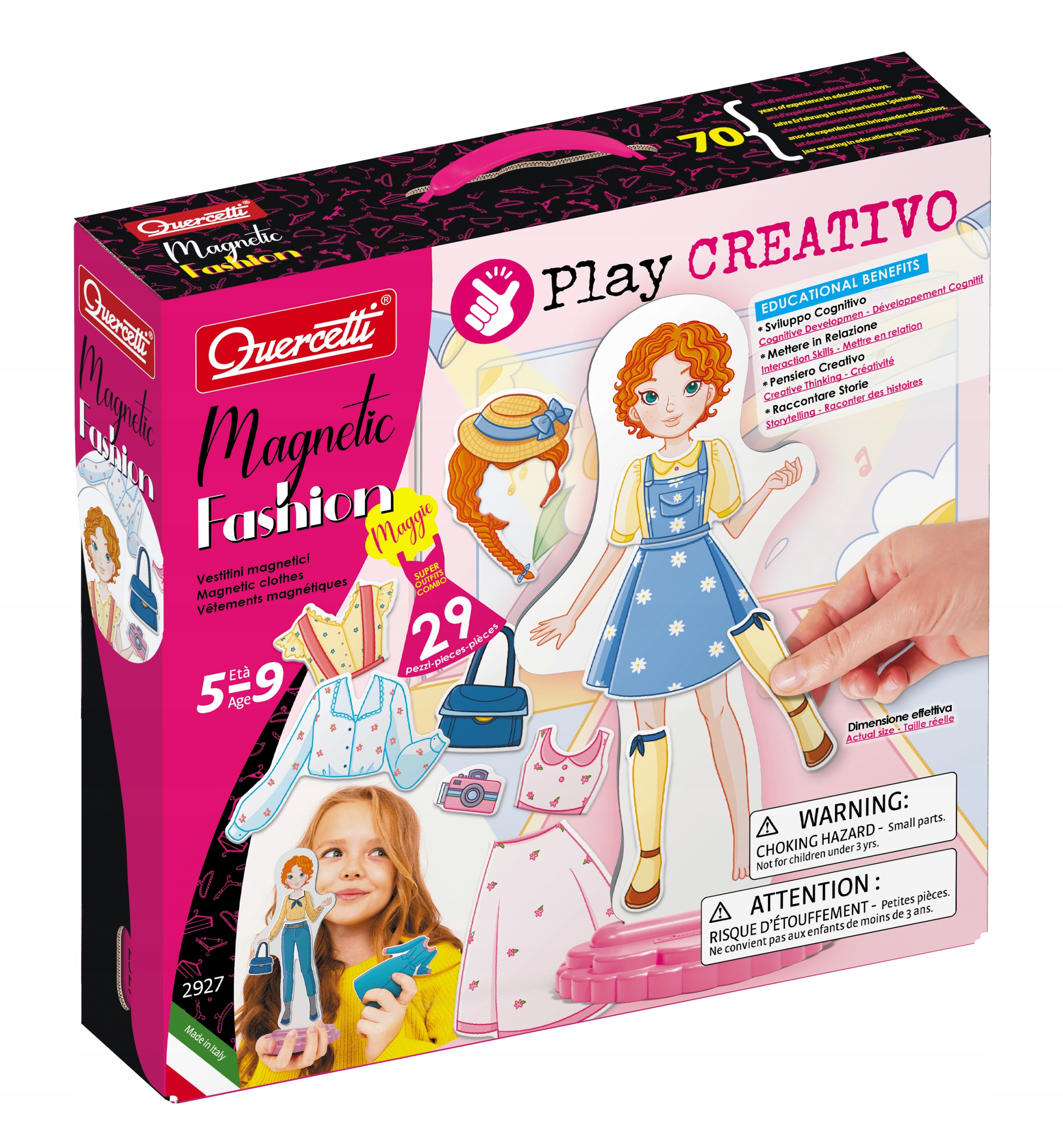 Магнетичний модний одяг Maggie — це набір для творчих ігор від Quercetti. Нова версія продукту та багато нових суконь-магнітиків, які можна комбінувати для створення ідеального вбрання. У набір входять: - 29 магнітних елементів, які можна вільно комбінувати для створення сліпучих творінь - магнітна лялька Меггі. Усі набори "Magnetic Fashion" сумісні. Граючи з Анією та Лаурою, ви можете комбінувати різні стилі та щоразу придумувати нові. Розміри: 30х29,5х6,5 см. Вік: 5+