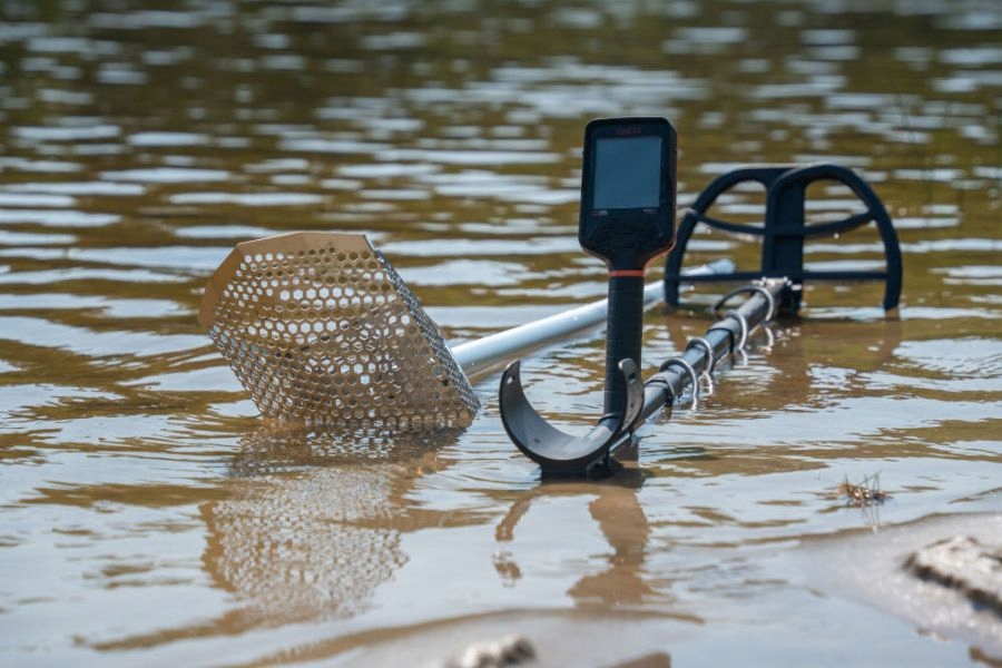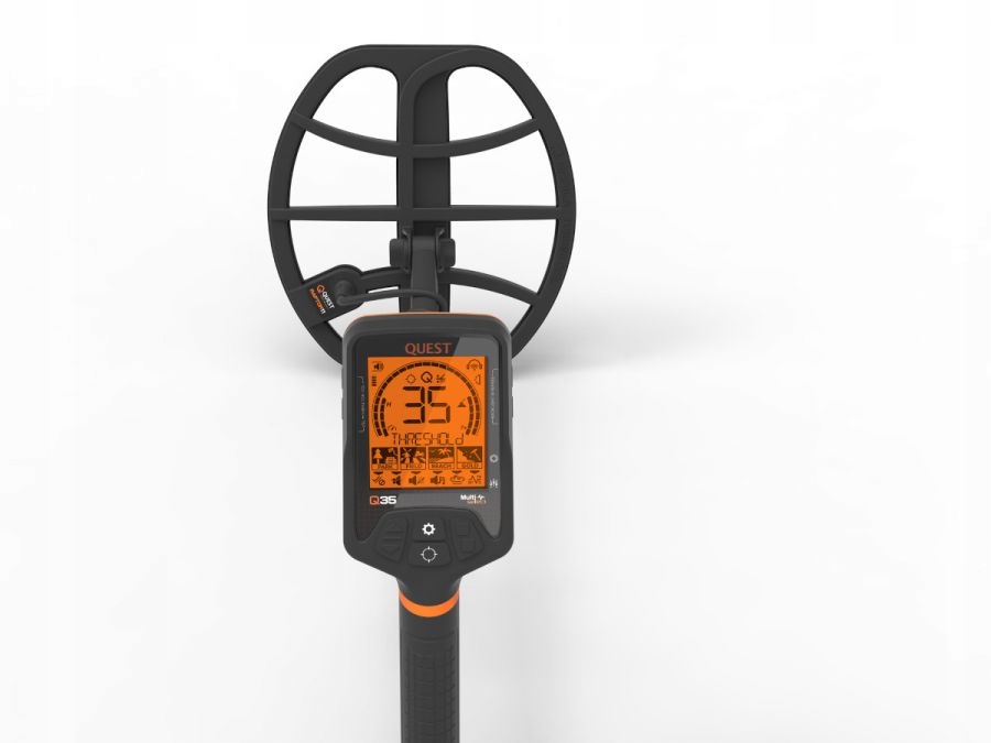 Quest Q35 – це повністю водонепроникний детектор. на глибину 5 метрів. У комплект входить вбудований бездротовий модуль і бездротові навушники Quest Wirefree Lite. Детектор оснащений котушкою Raptor11 розміром 28х26 см.